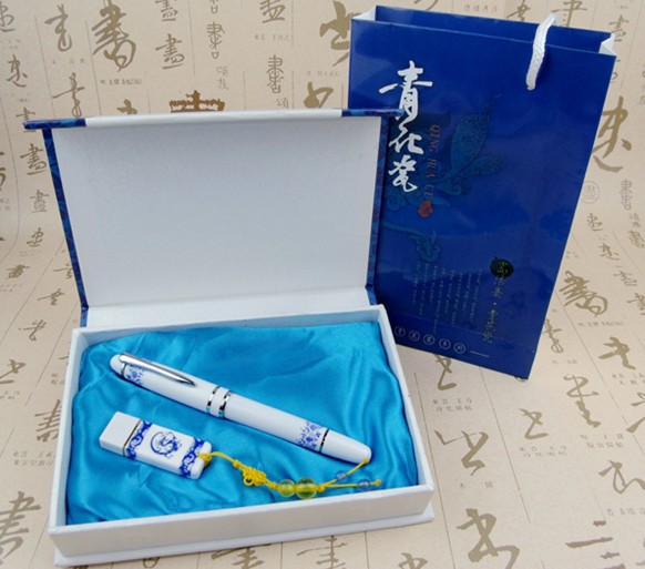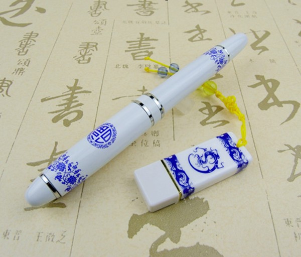陶瓷U盘 青花瓷U盘 中国特色U盘 青花瓷套件U盘 青花瓷笔 U盘