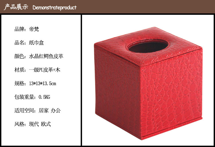 帝梵 纸巾盒 红鳄鱼纹 皮革 方形 创意 奢华 喜庆 卧室