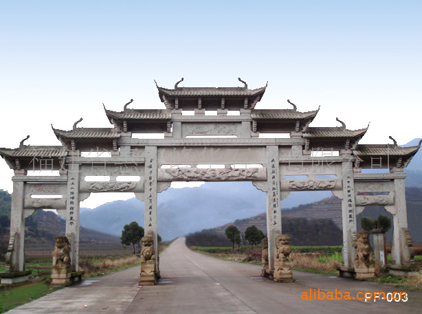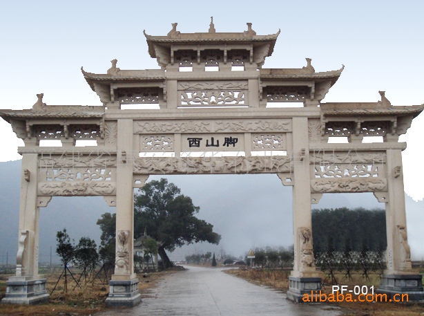 设计加工制作传统风格花岗岩石牌坊--做工精细