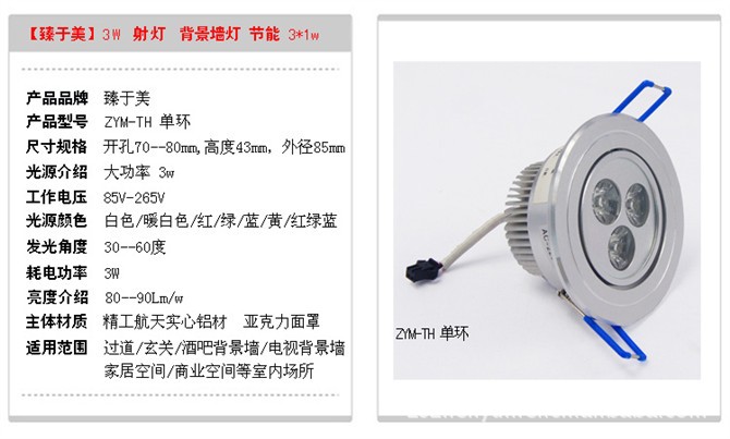 厂家直销LED天花灯 3W