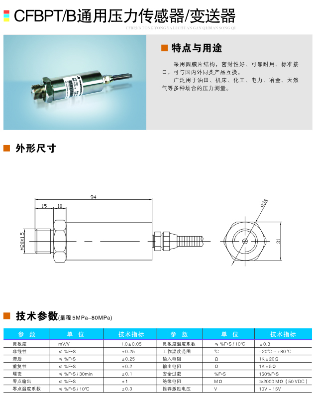 CFBPT/B通用压力传感器/变送器