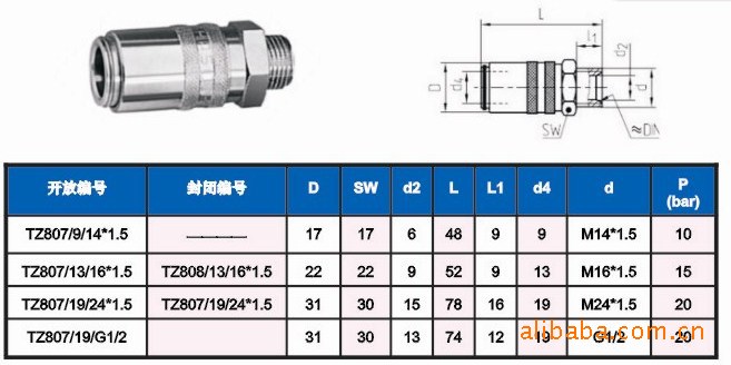 德式模具接头TZ807/9/14*1.5/封闭式运水黄铜接头外牙