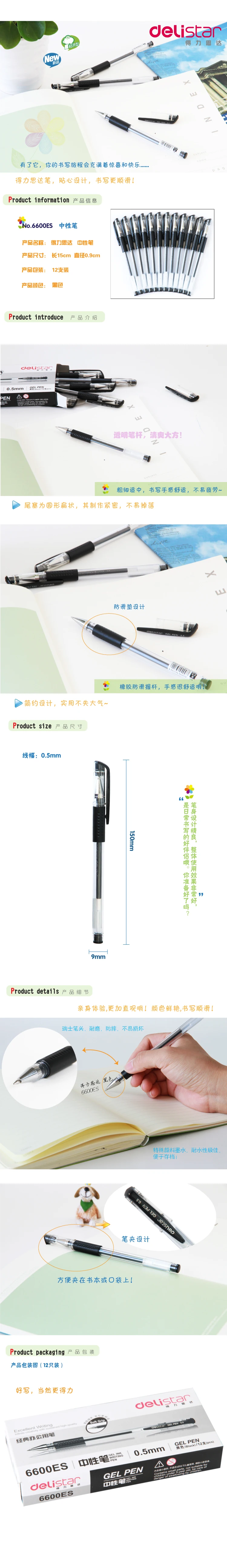 供应得力文具6600中性笔0.5mm签字笔 子弹头笔芯水性笔厂家