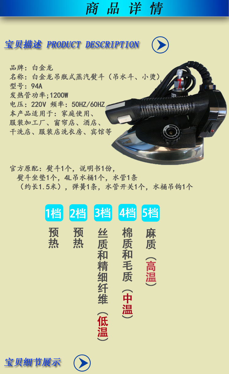 正品白金龙94型吊瓶式蒸汽熨斗 大汽量吊水斗 94A熨斗
