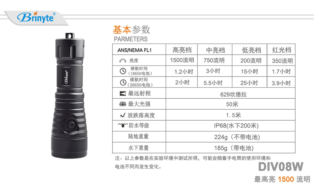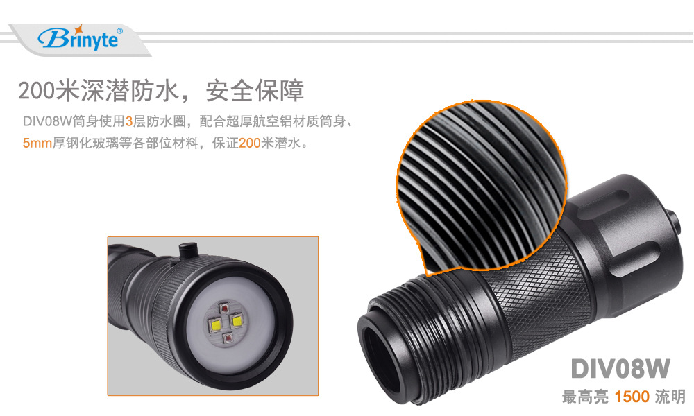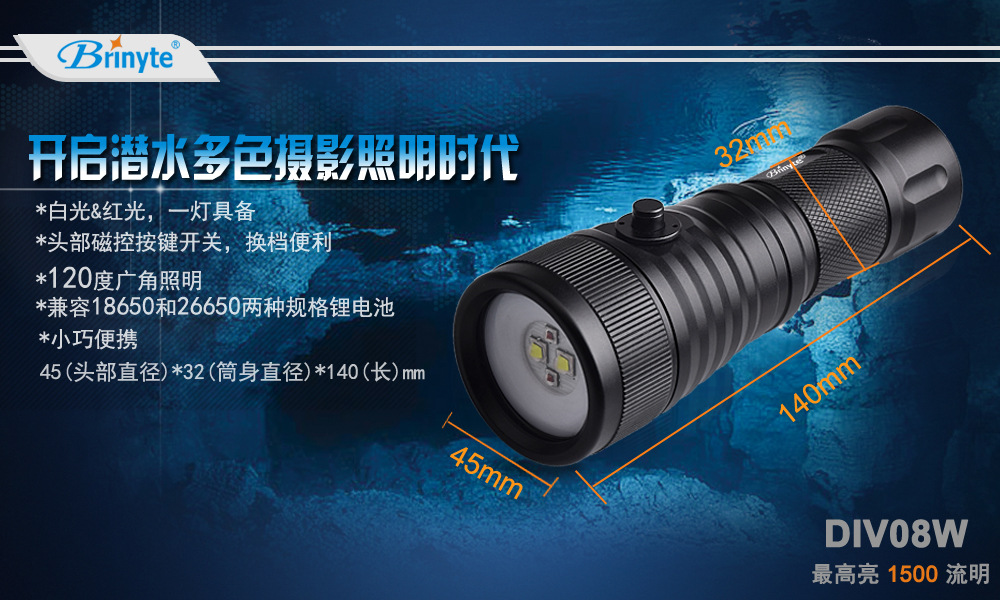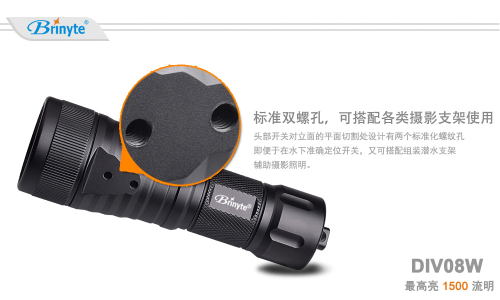 厂家直销 DIV08W双光源补光手电筒 潜水摄影手电筒