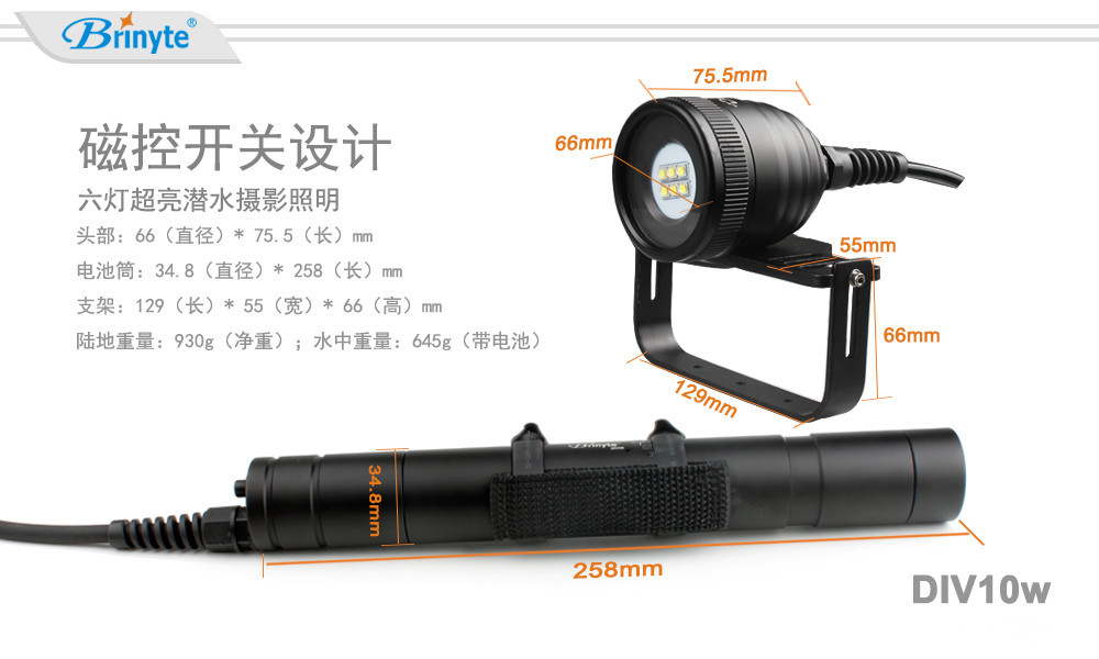 工厂热销 DIV10W 摄影潜水手电筒 充电泛光 批发
