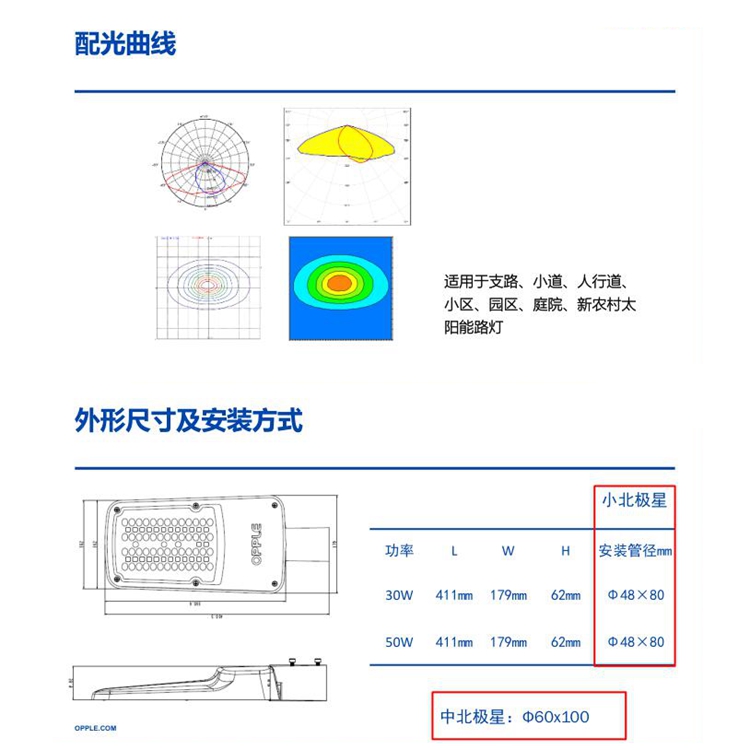 欧普LED路灯北极星系列80W户外防水IP66工业园 小区 城市道路