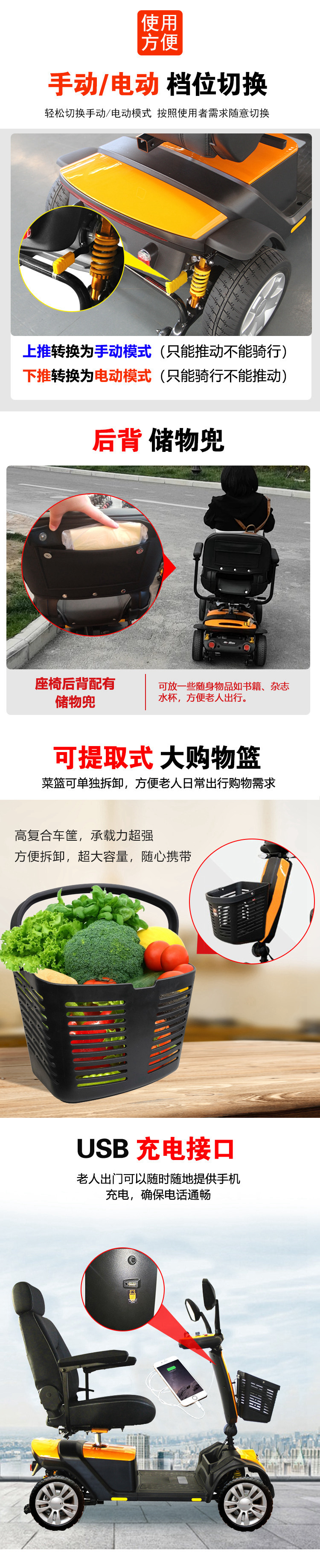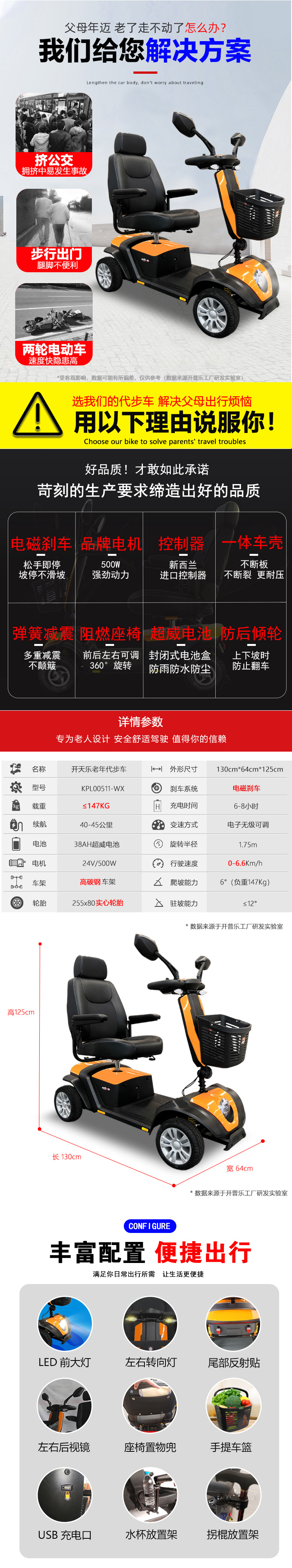 天津开天乐中型老年人代步车,四轮助力车,电动轮椅,电磁刹车系统