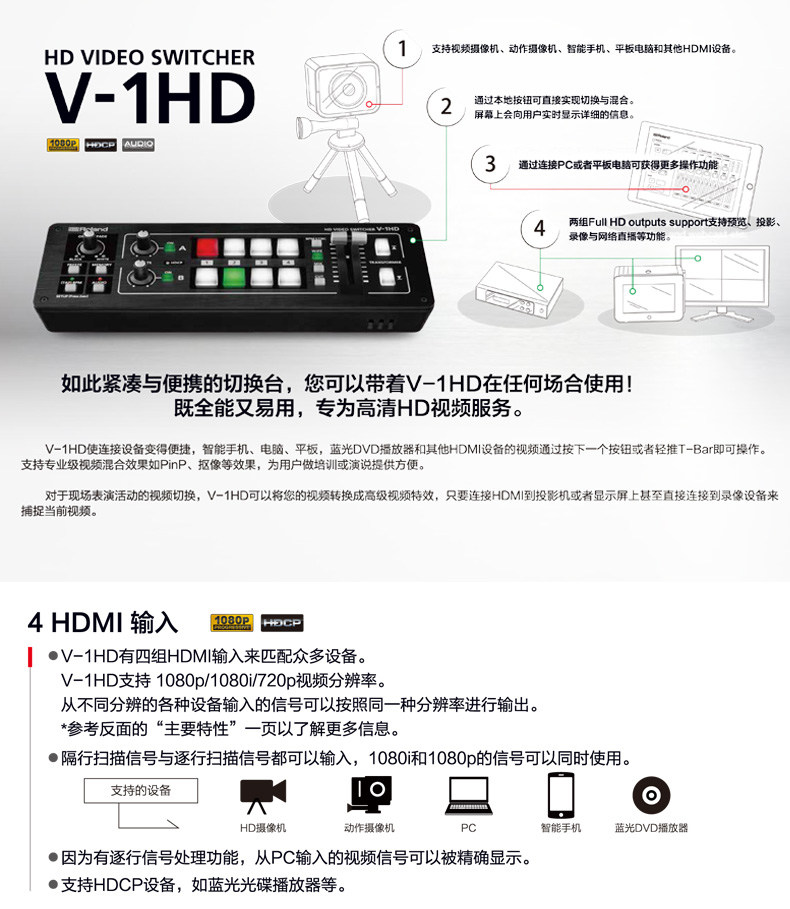 Roland罗兰视频导播台VR-1HD直播推流音视频切换台