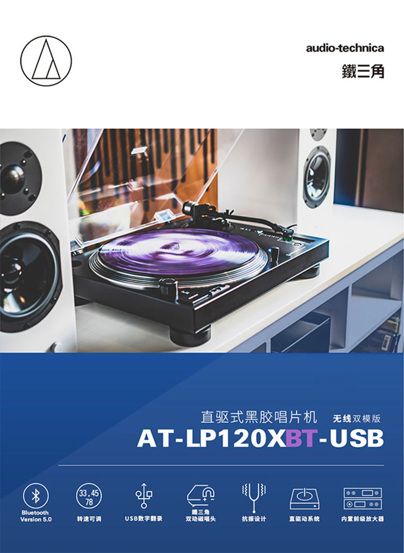 Audio-technica铁三角AT-LP60X BK黑胶唱机唱片机复古留声机