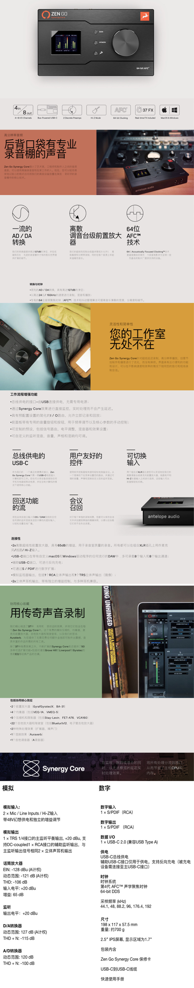 Antelope羚羊Zen Go USB便携声卡音频接口编曲混音录音室直播设备