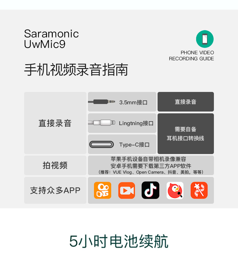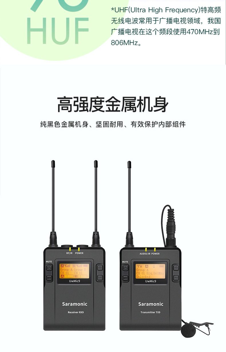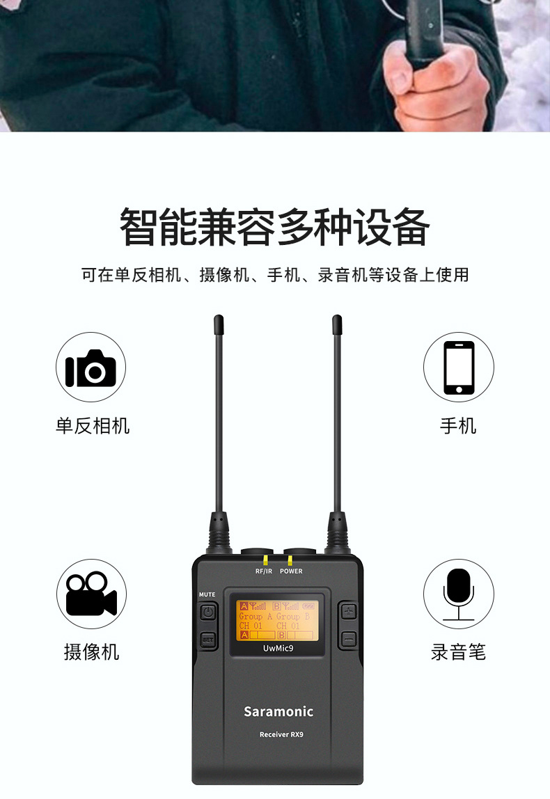 枫笛广播级无线麦克风小蜜蜂 UwMic9 一拖二相机手机直播拍摄