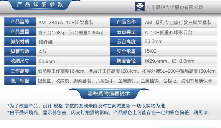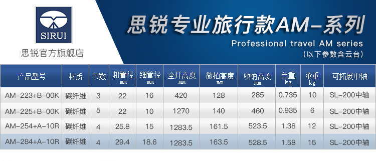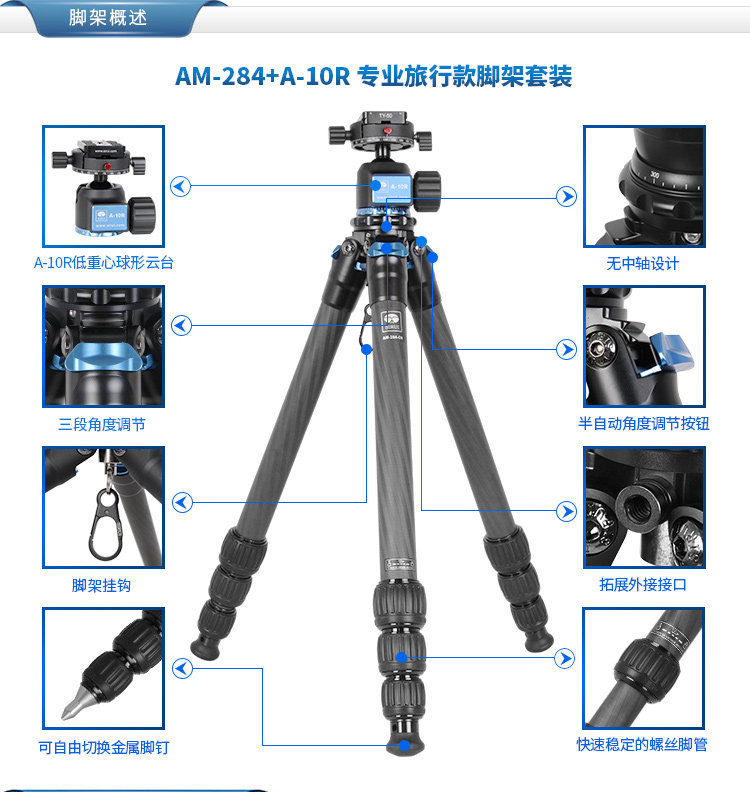 思锐AM-284+A-10R碳纤维单反相机三脚架便携专业低云台支架