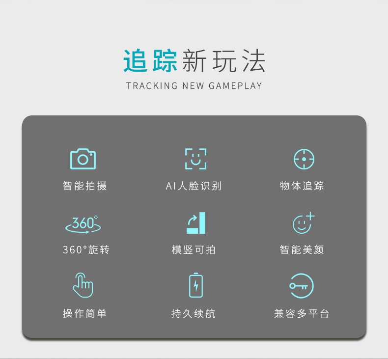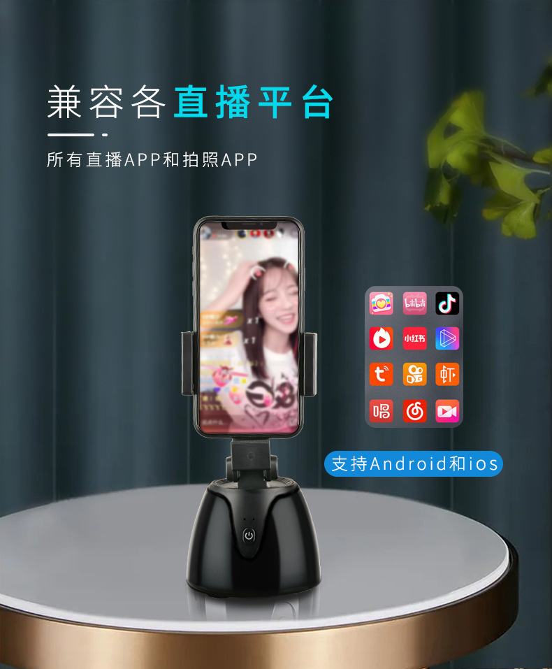 跨境智能AI人脸识别360手机云台 抖音直播自拍神器全景跟拍