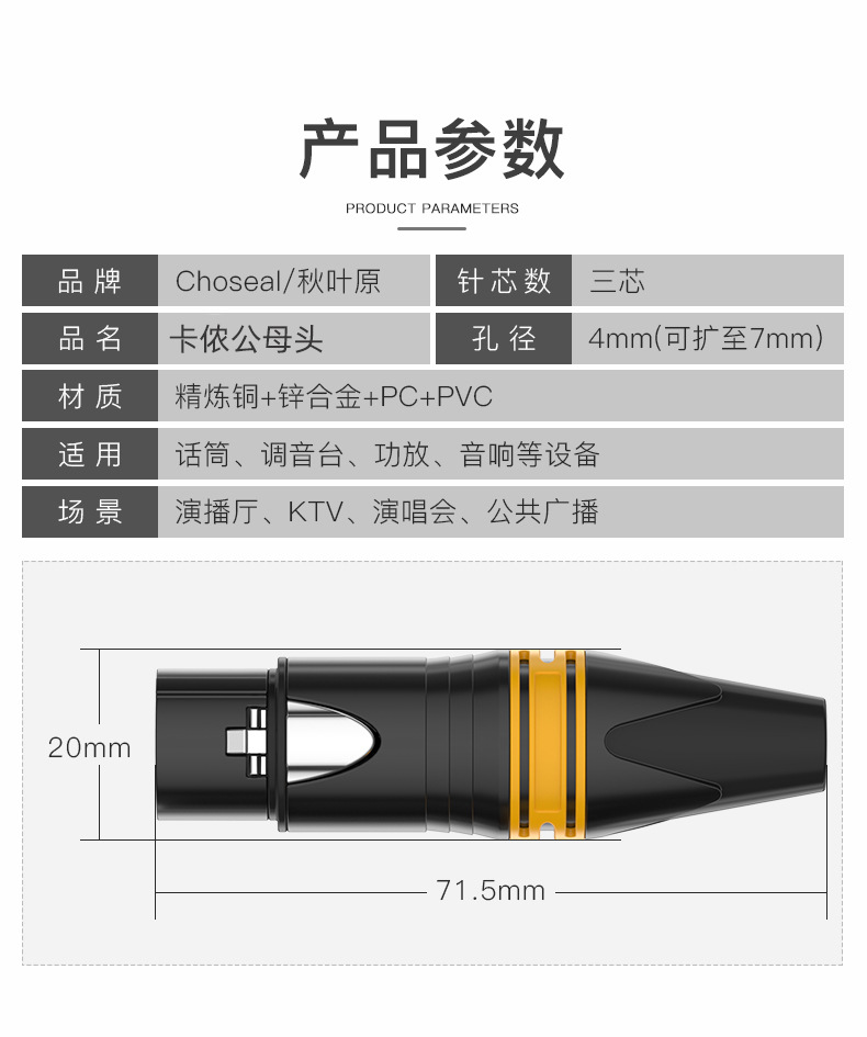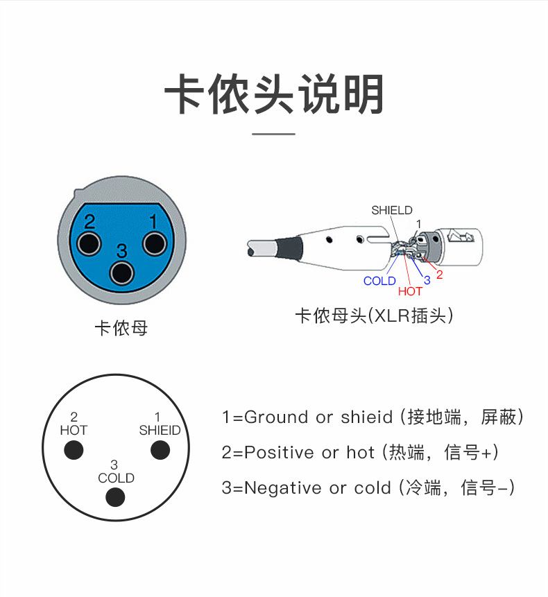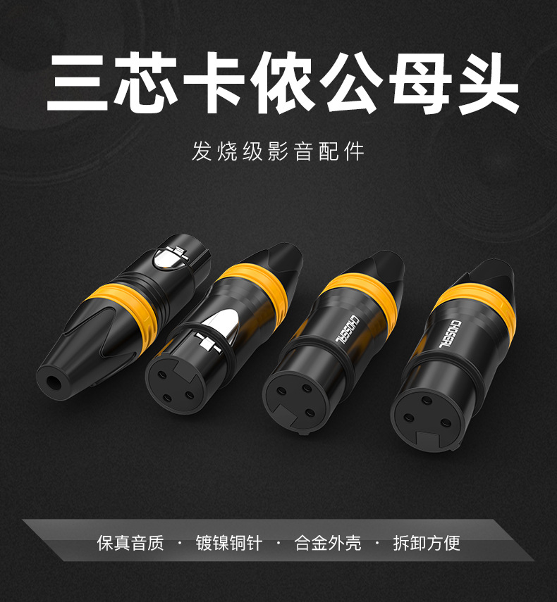 秋叶原QD2002三芯卡农焊接头麦克风话筒音频头卡侬头母头