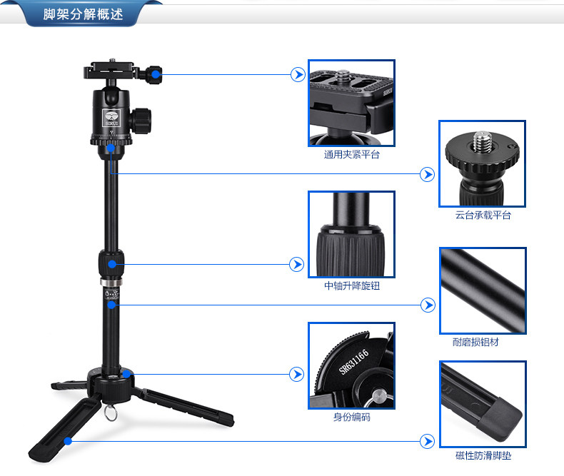 思锐3T-35K 手机微单相机手持三脚架 便携桌面三角架户外自拍