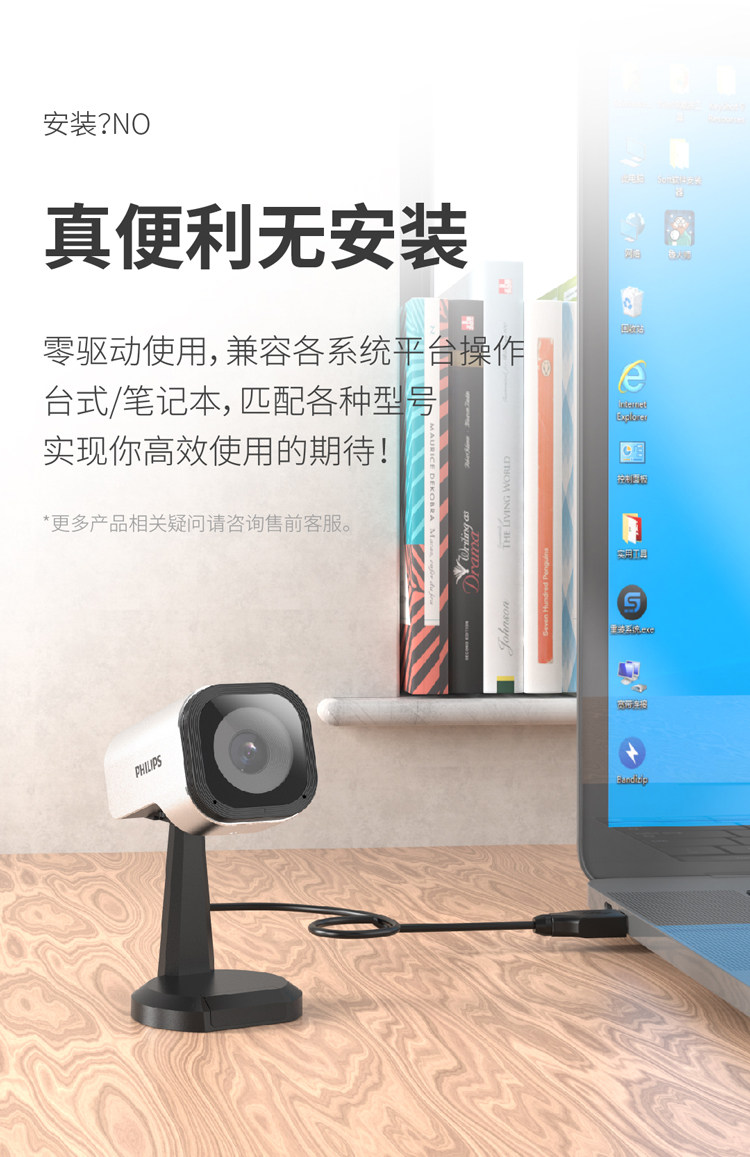 飞利浦PHILIPS PSE0520 高清视频会议主播直播摄像头 USB免驱