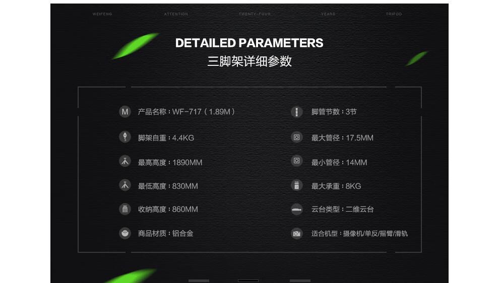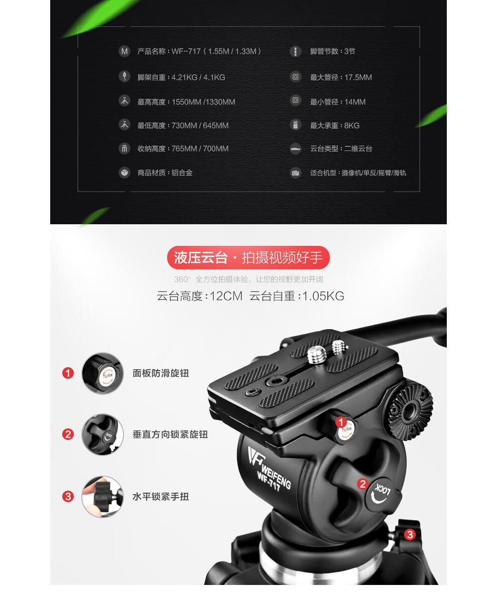 WEIFENG伟峰WF717铝合金三脚架1.3/I.5/1.8米