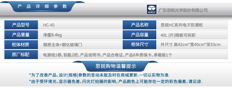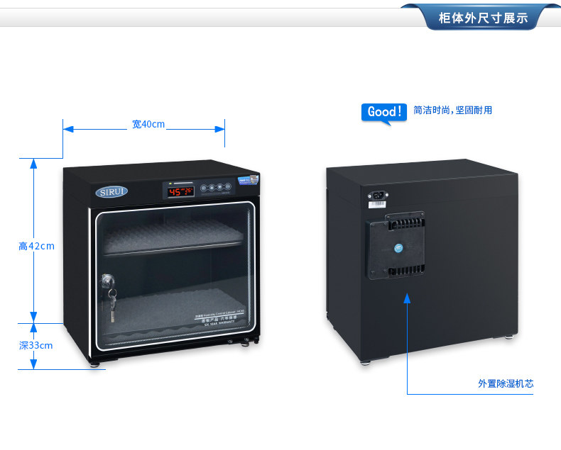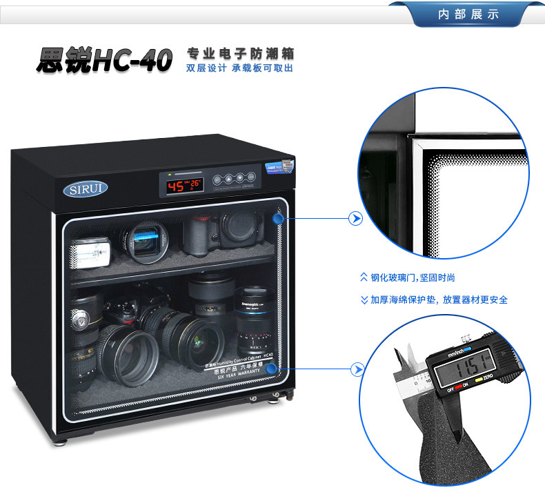 思锐 HC40 防潮箱节能 光触媒电子防潮柜单反相机收纳箱除湿柜