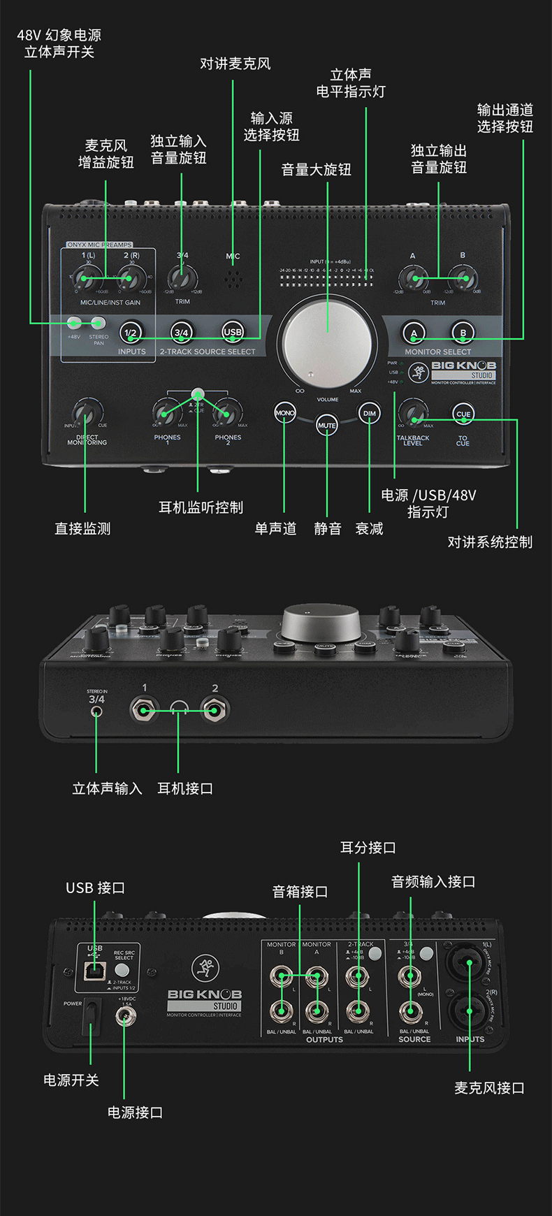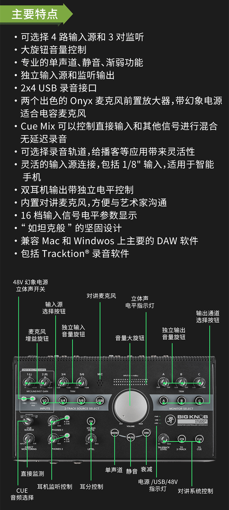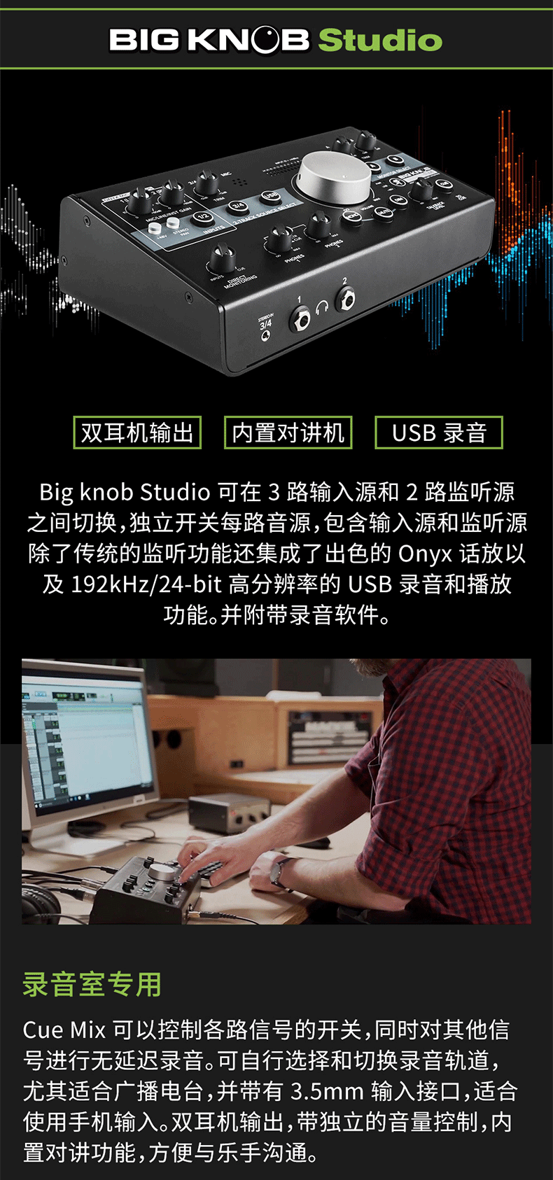 runningman美奇Bigknob studio录音棚对讲桌面兼听控制器调音台