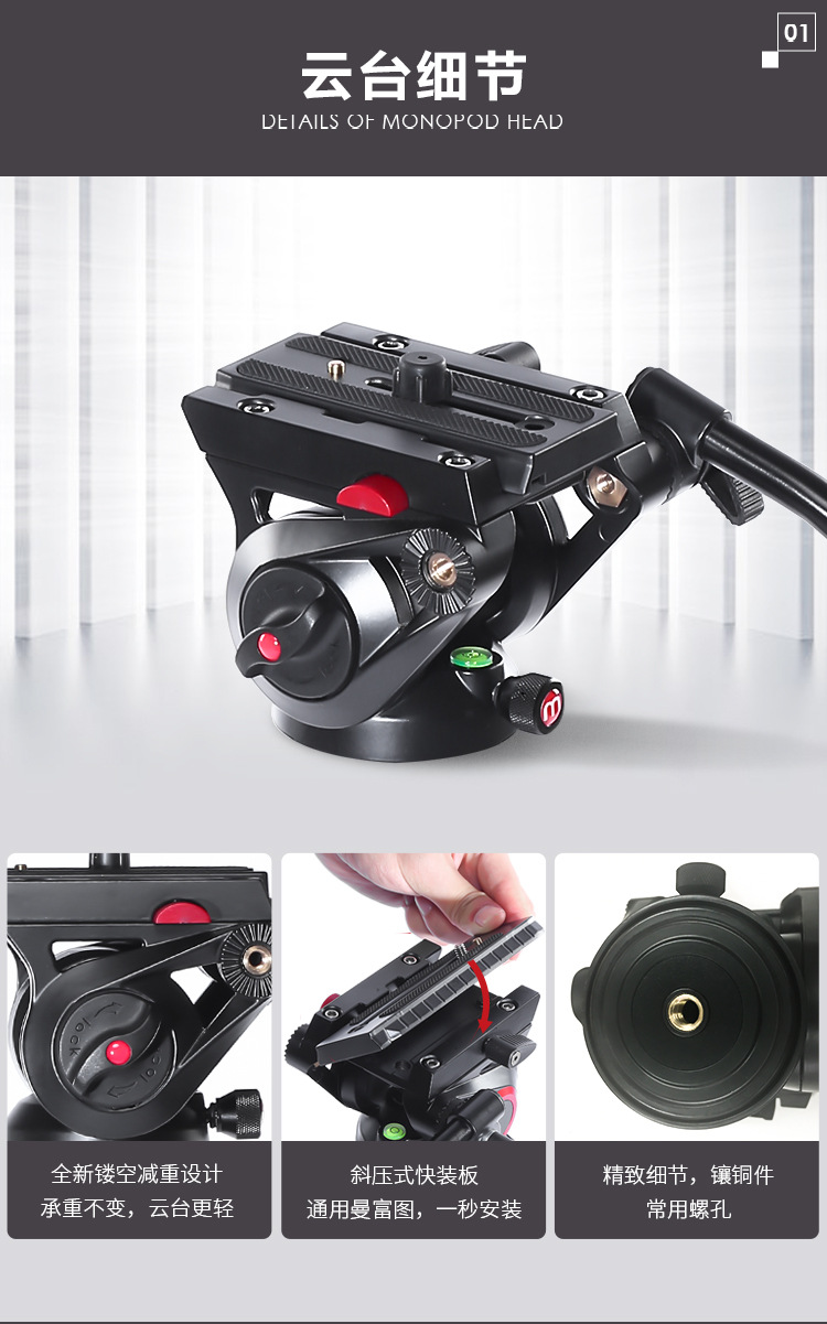 图瑞斯TX-V12T-Q PLUS碳纤维铝合金摄像机三脚架套装
