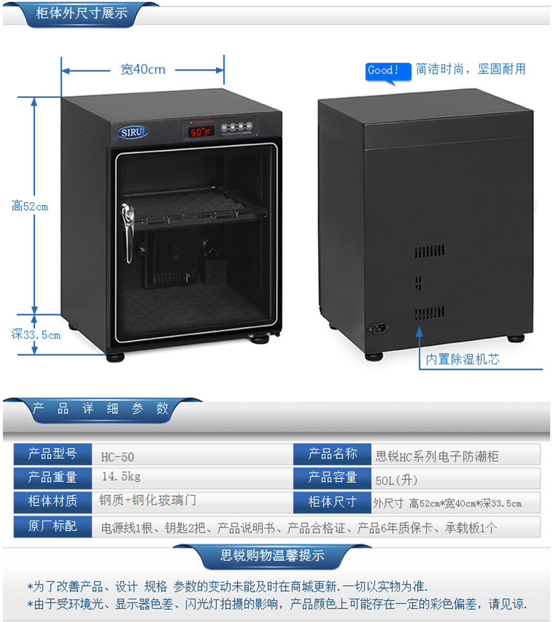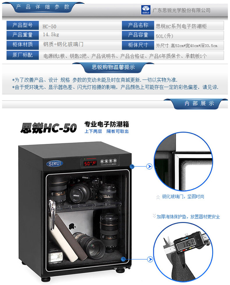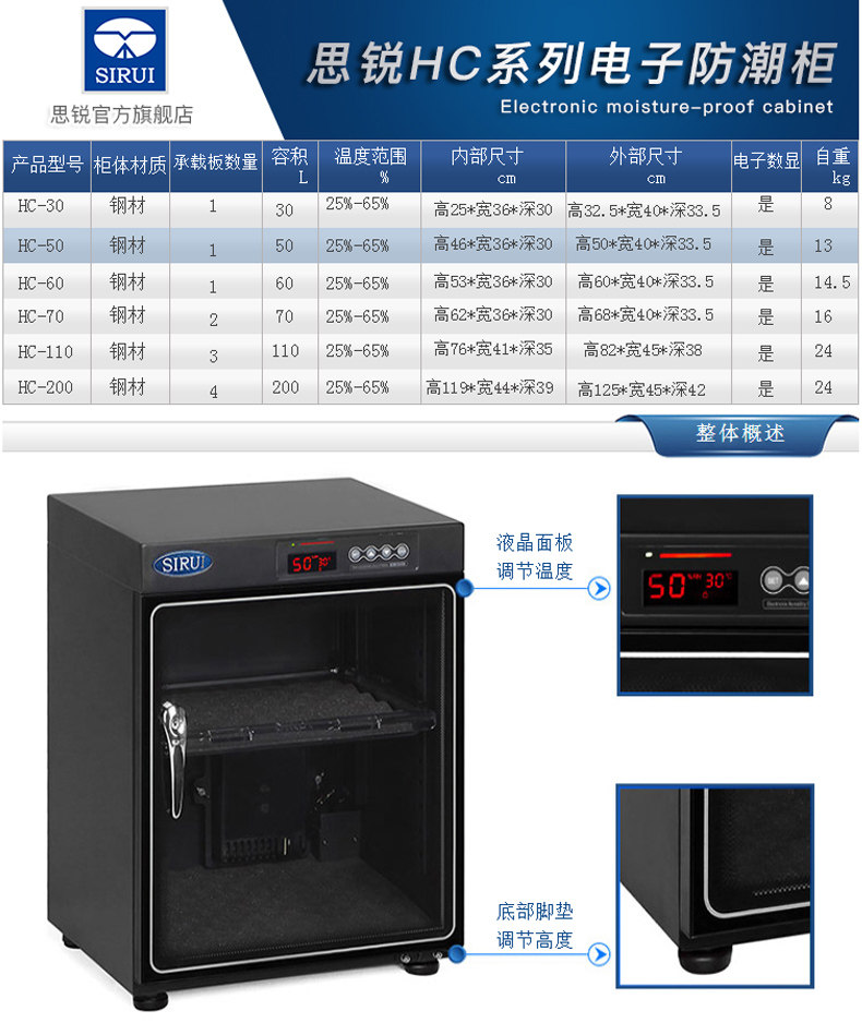 SIRUI/思锐HC-50 HC50 摄影器材防潮柜 电子防潮箱 干燥箱