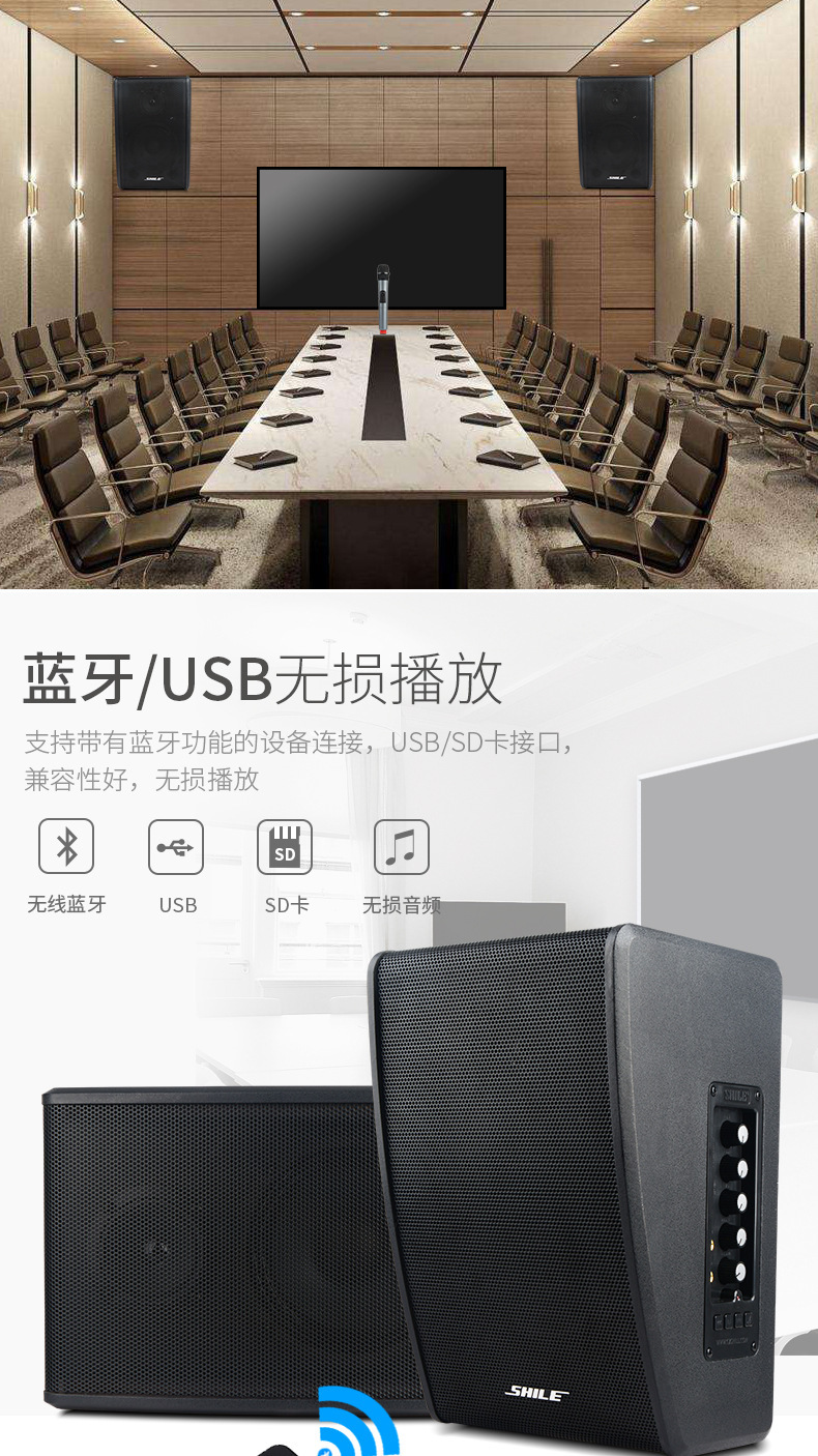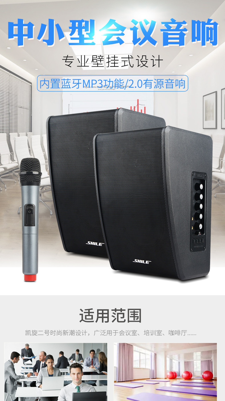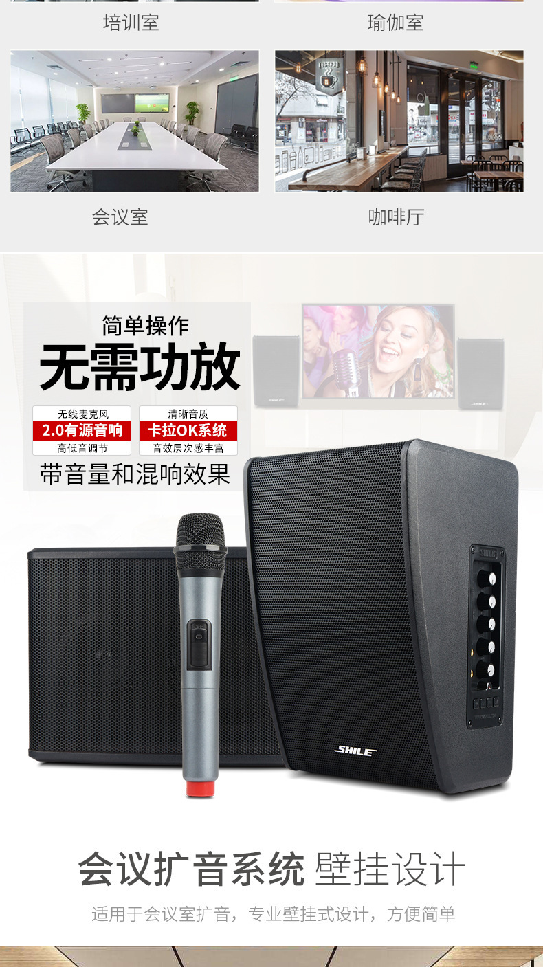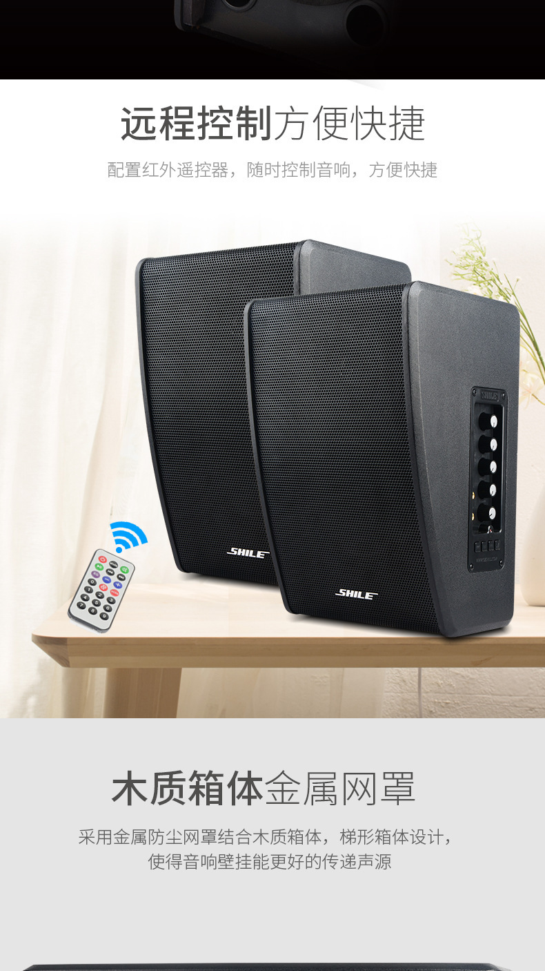 狮乐凯旋二号壁挂有源音箱 带无线话筒 会议对箱店铺背景音乐音响
