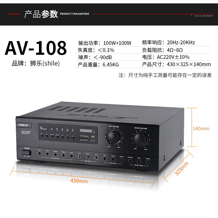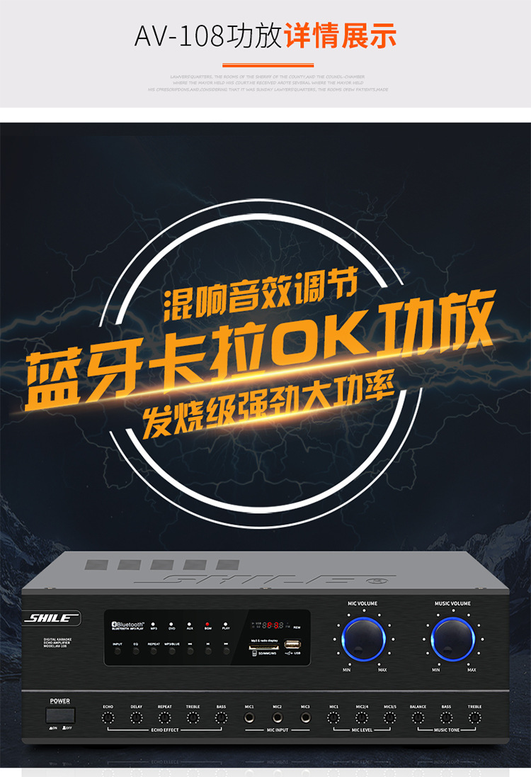 蓝牙功放机狮乐AV-108家庭影院卡拉OK舞台会议室功率放大器