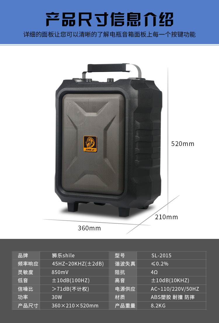 SHILE狮乐SL-2015户外广场舞音响拉杆便携移动音箱