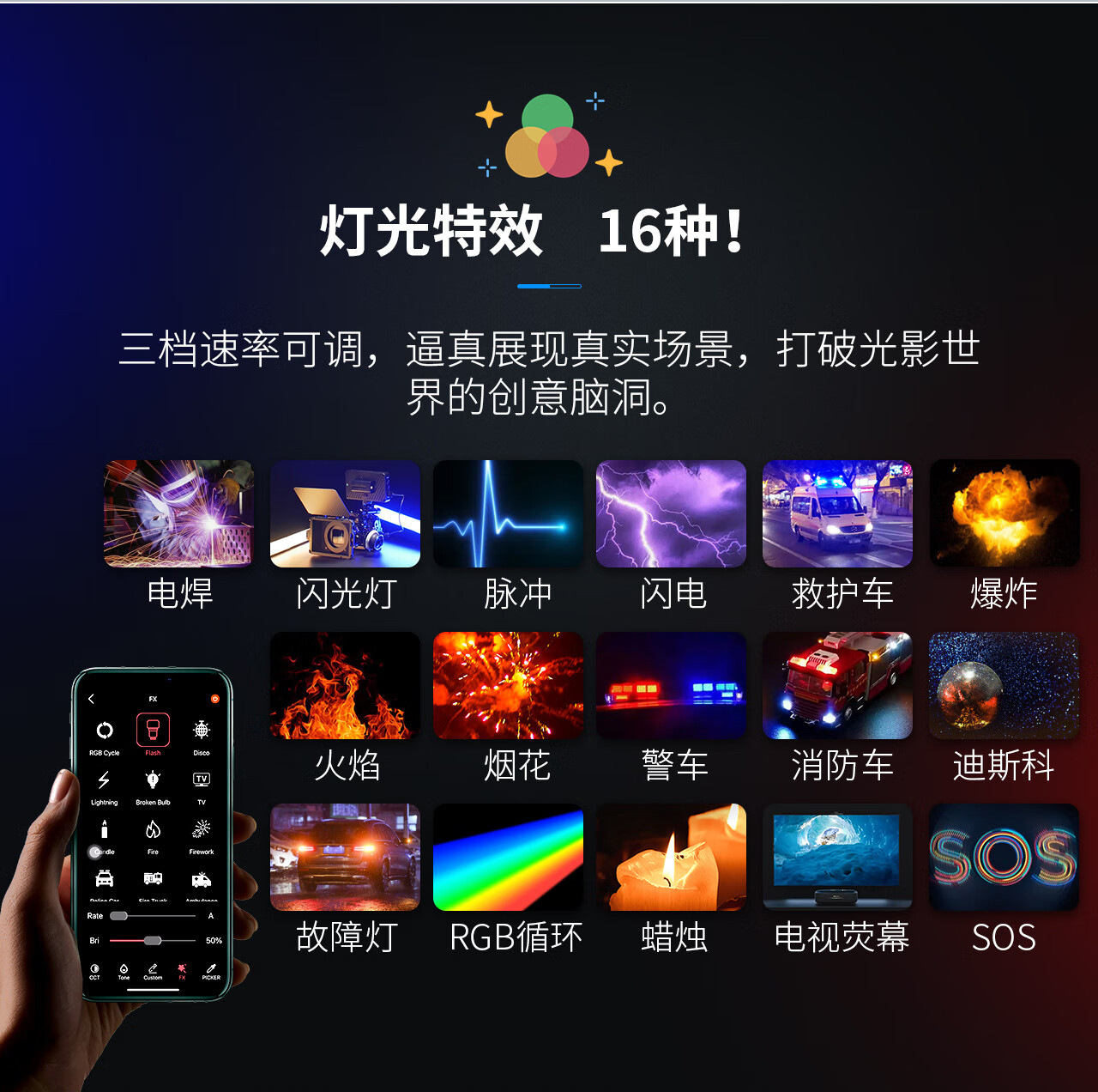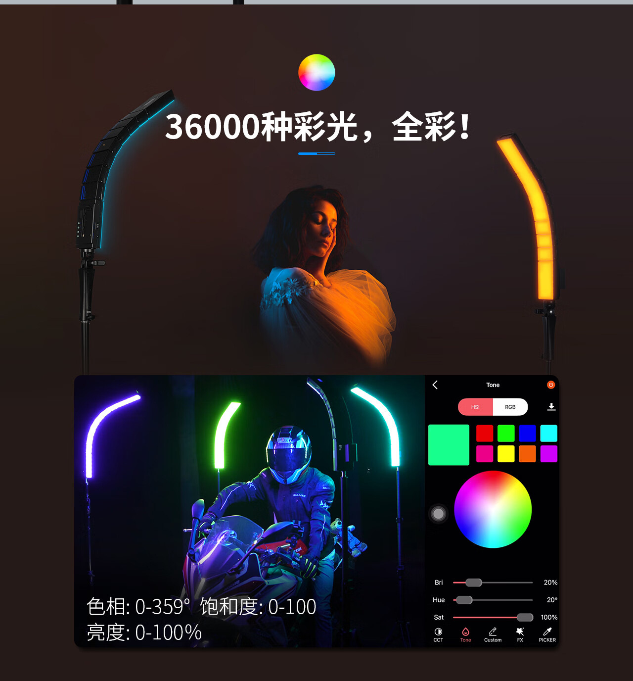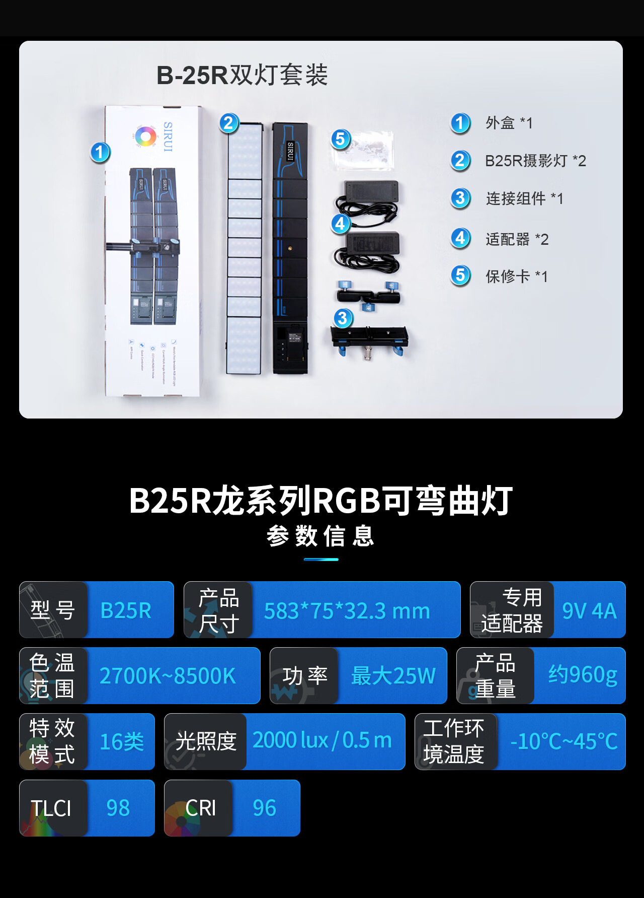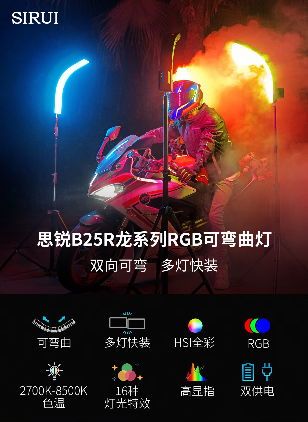 SIRUI思锐 B25R可弯曲RGB补光灯摄影摄像直播短视频vlog氛围灯