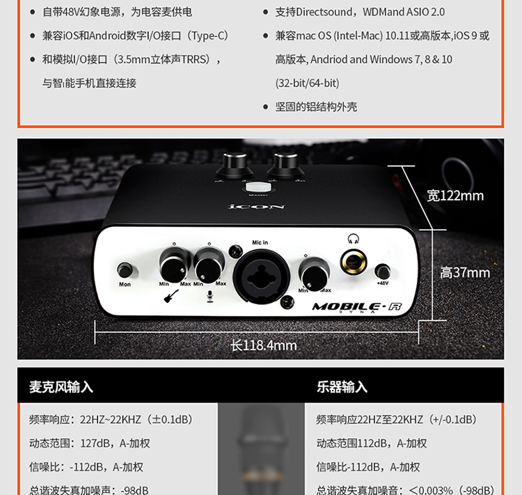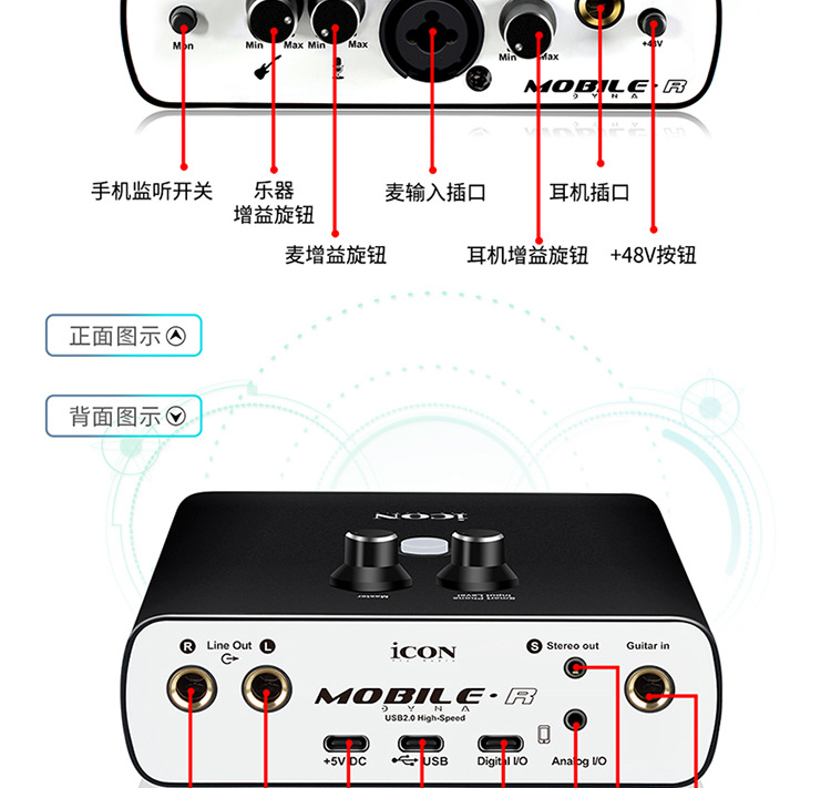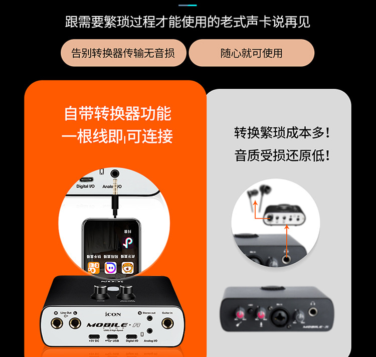 icon艾肯 mobile R dyna 外置声卡抖音唱歌主播直播电脑手机声卡