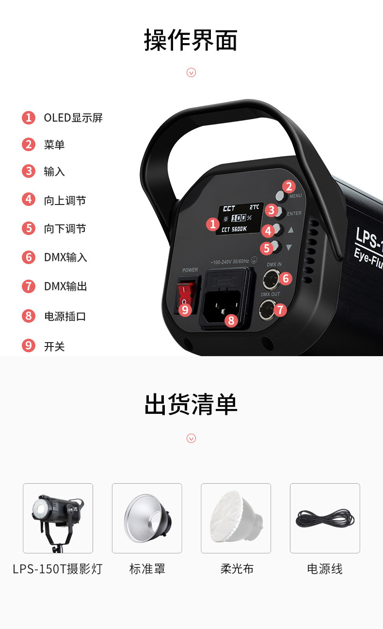 耀诺演播室灯光 影视聚光灯 LED聚光灯摄影灯