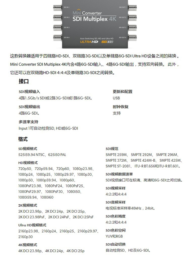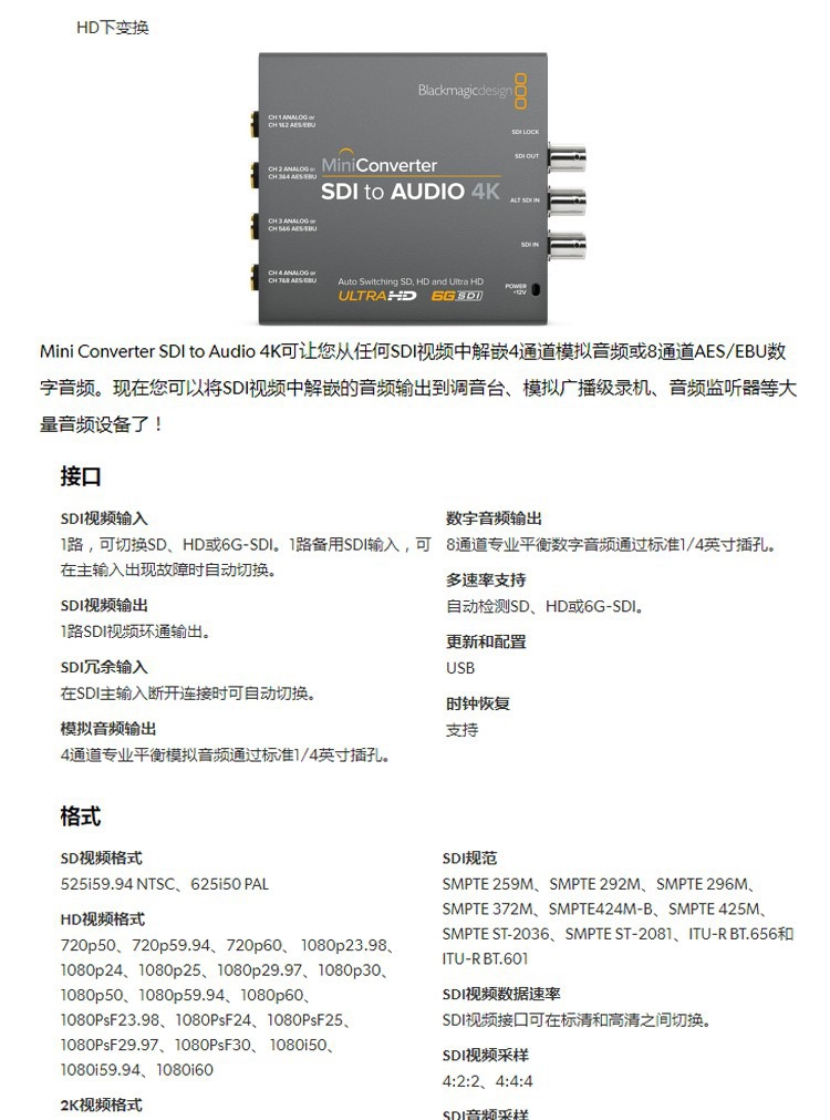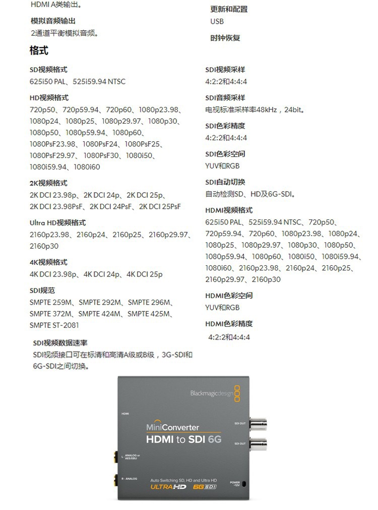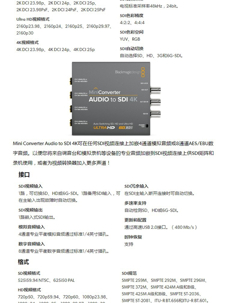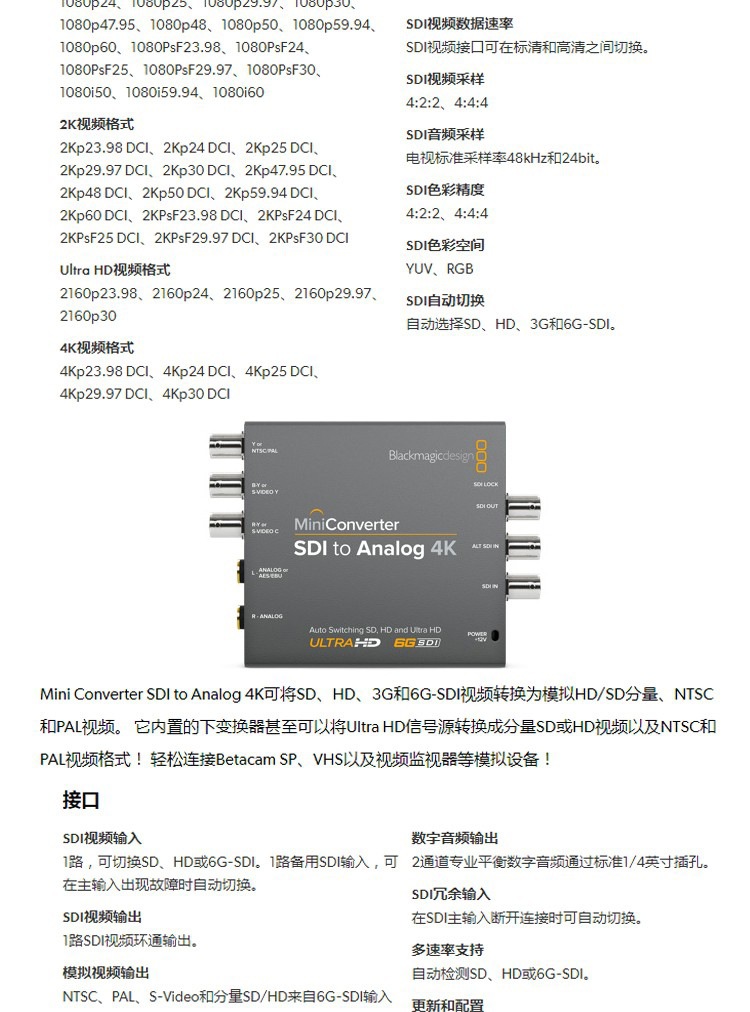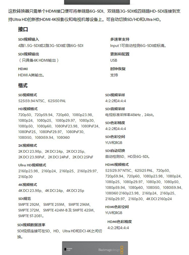 Blackmagic Design 6G-SDI Mini Converter系列4K广播级 转换器