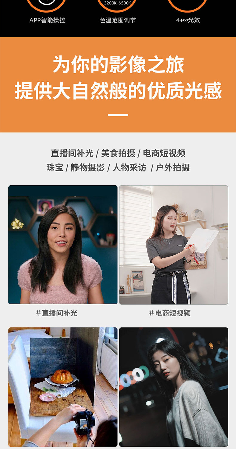 蒙以捷宝补光灯200W双色温直播录课抠像太阳灯柔光套装