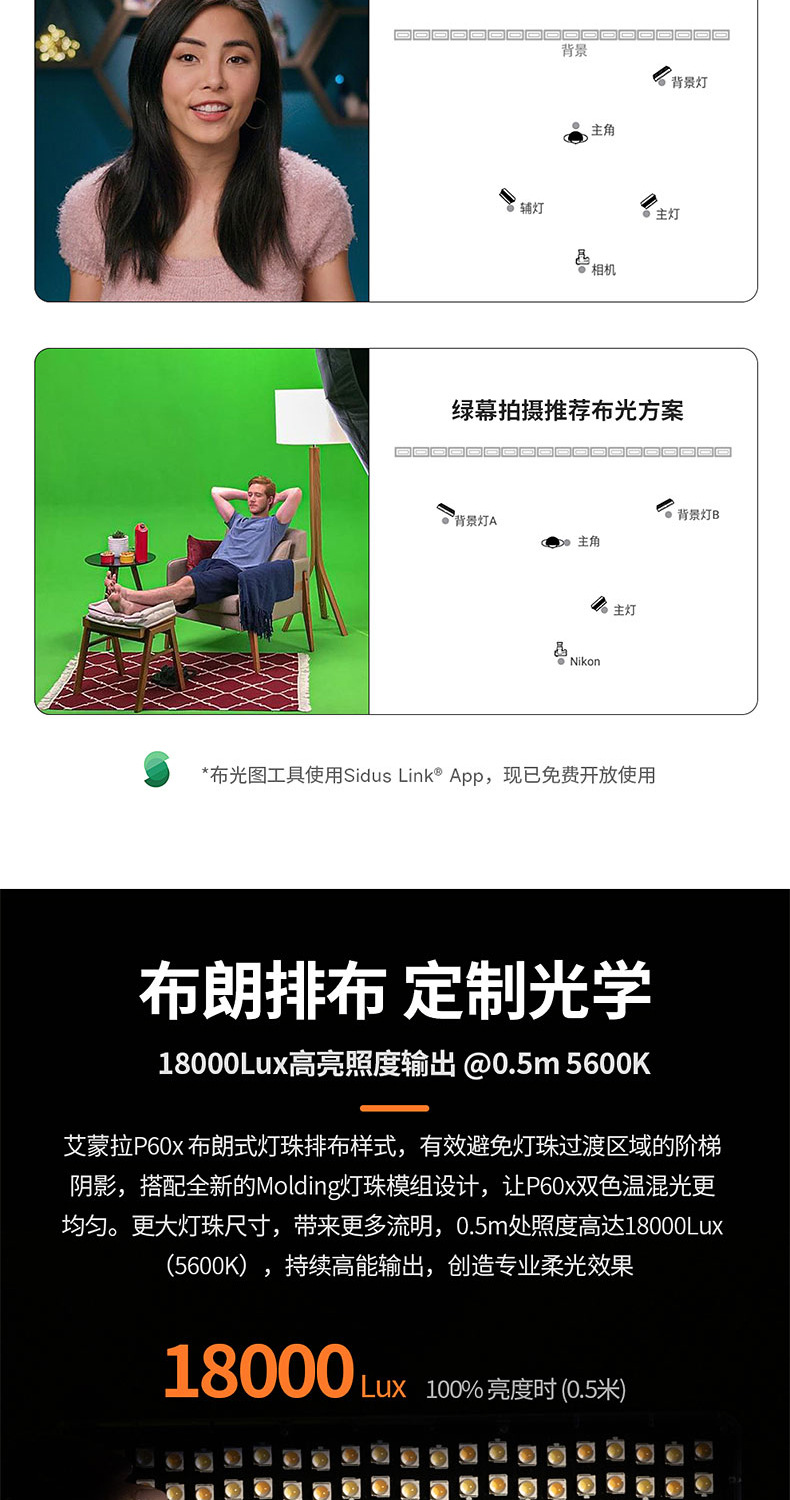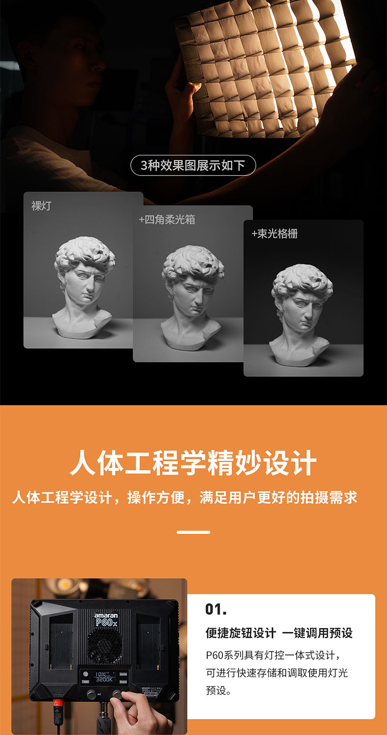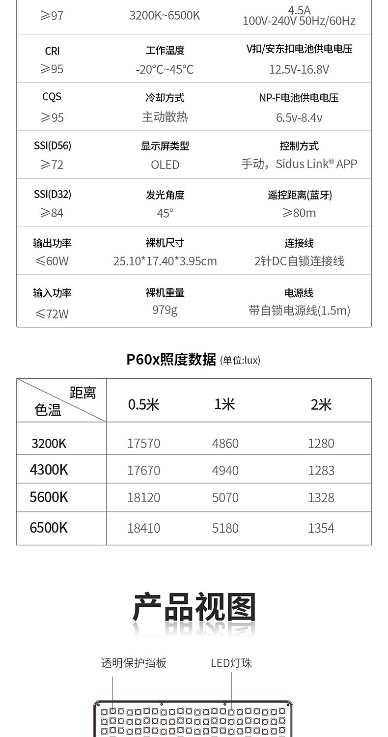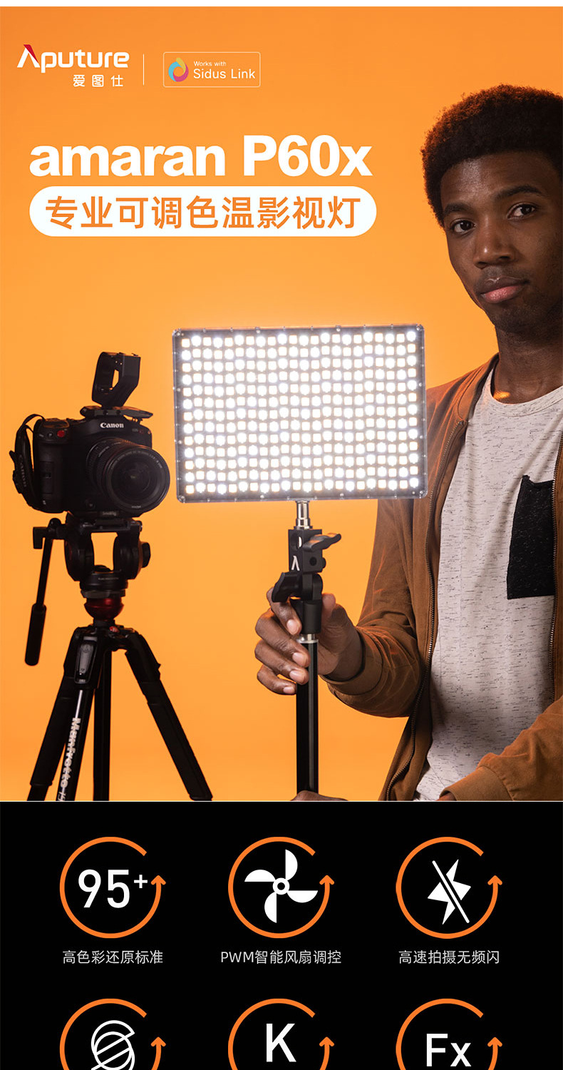 Aputure/爱图仕 艾蒙拉 Amaran P60x 双色温摄影LED补光灯