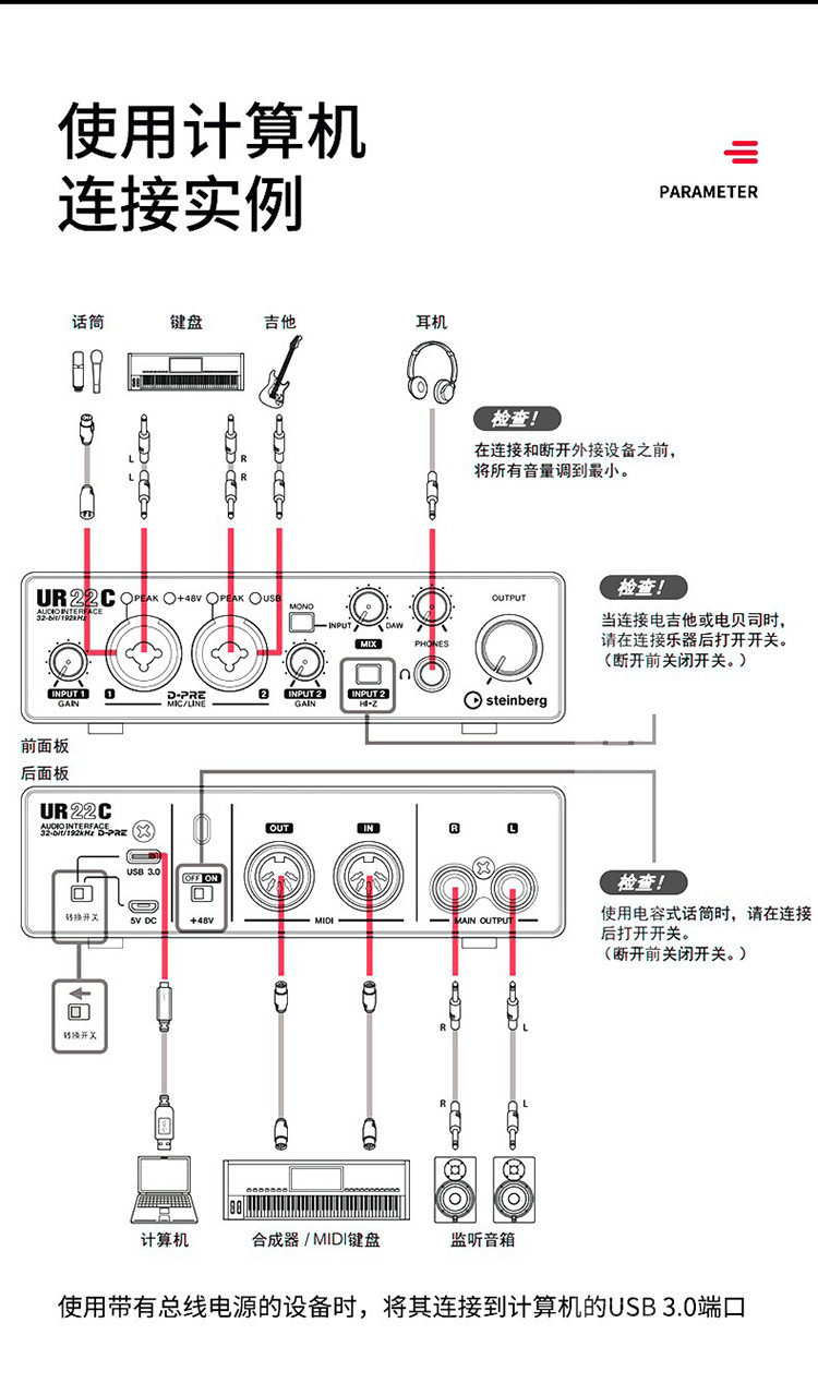 YAMAHA雅马哈UR22C UR44C外置声卡