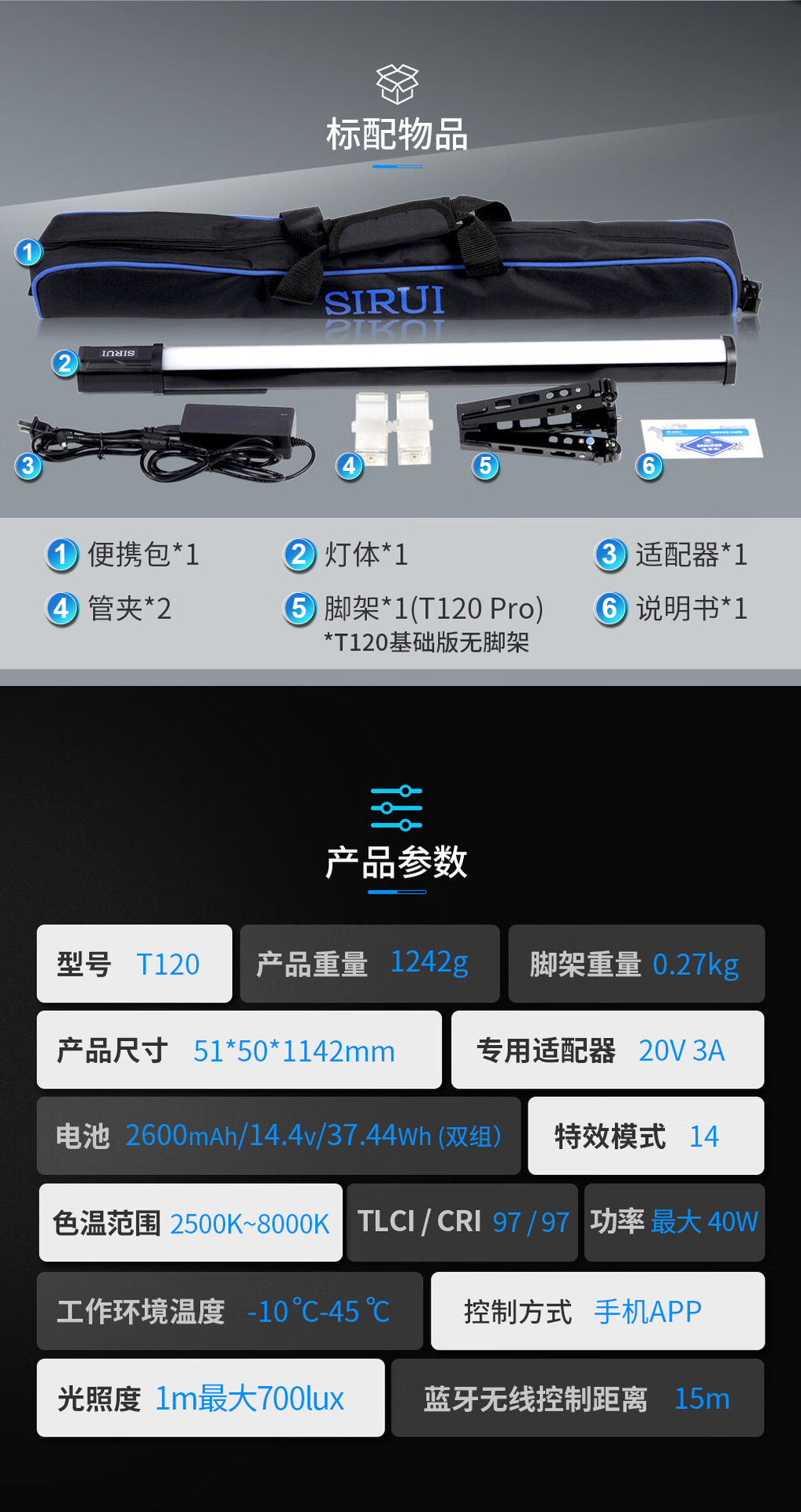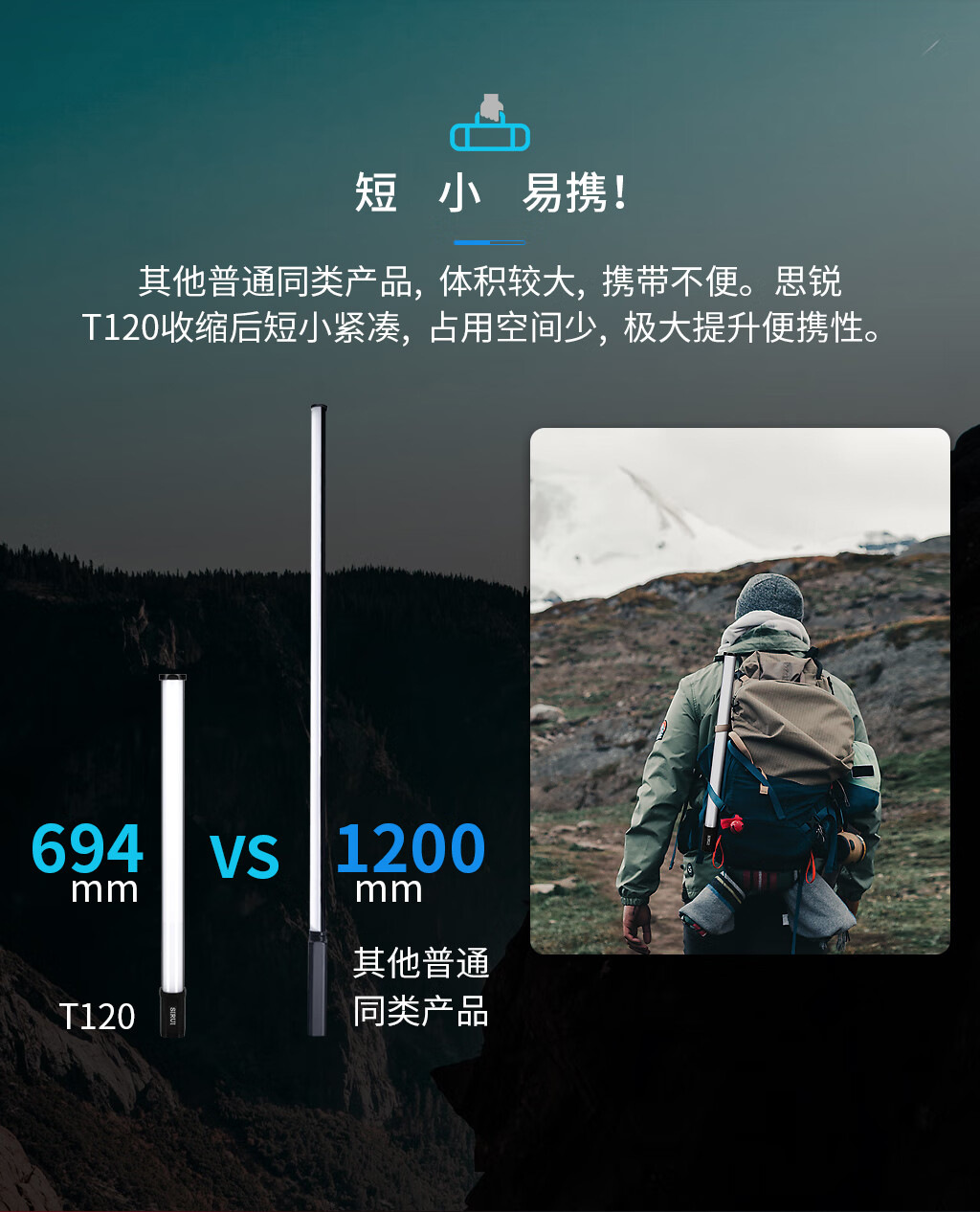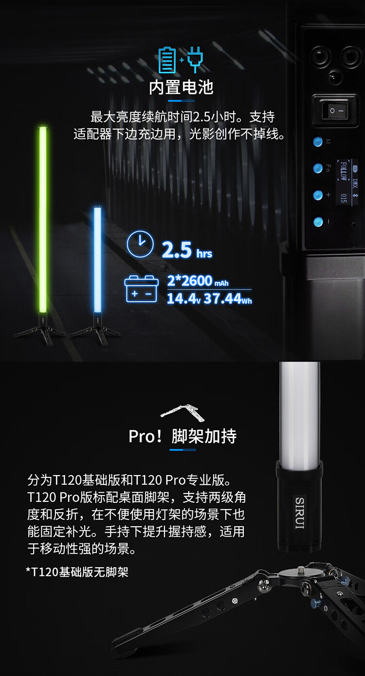 SIRUI思锐T120 40W 1.2m伸缩式管灯手持补光灯