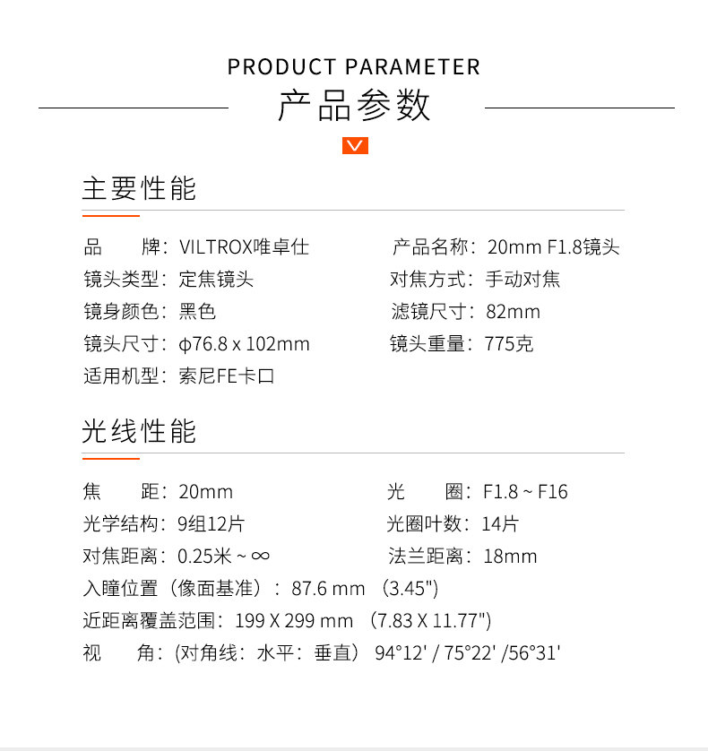Viltrox唯卓仕 FE20MM F1.8全画幅广角定焦镜头