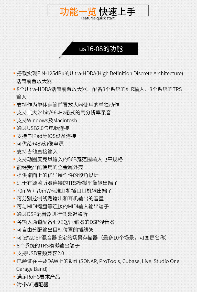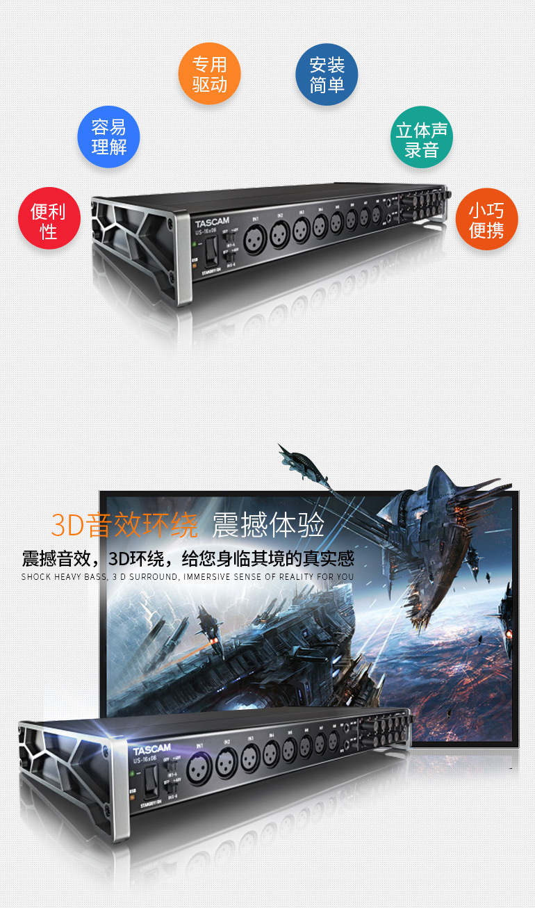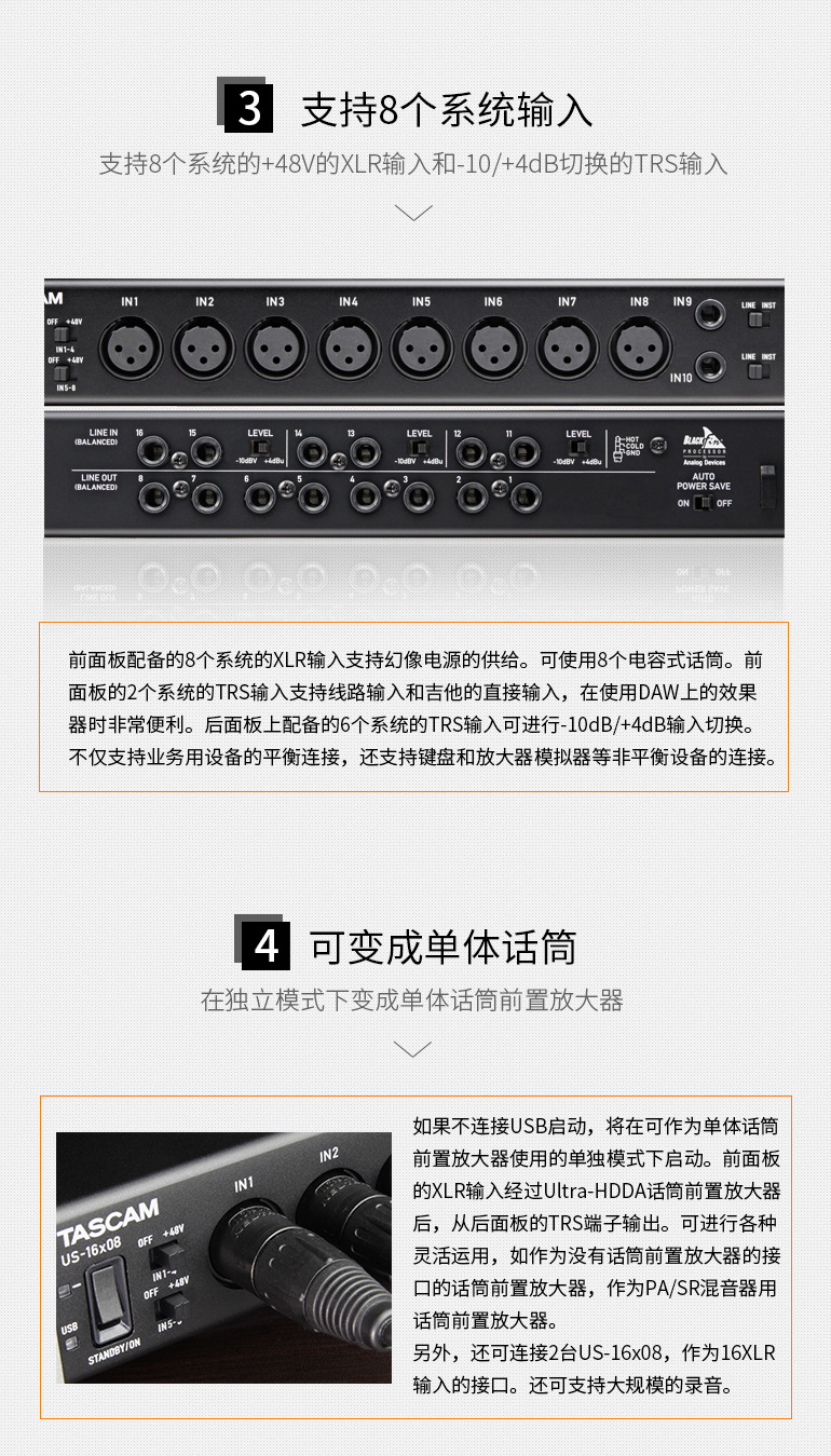 TASCAM/达斯冠 US-16x08 16进8出外置USB电脑制作音频接口