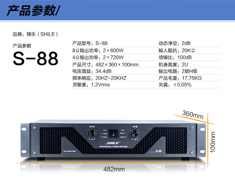 狮乐音响S-88纯后级功放