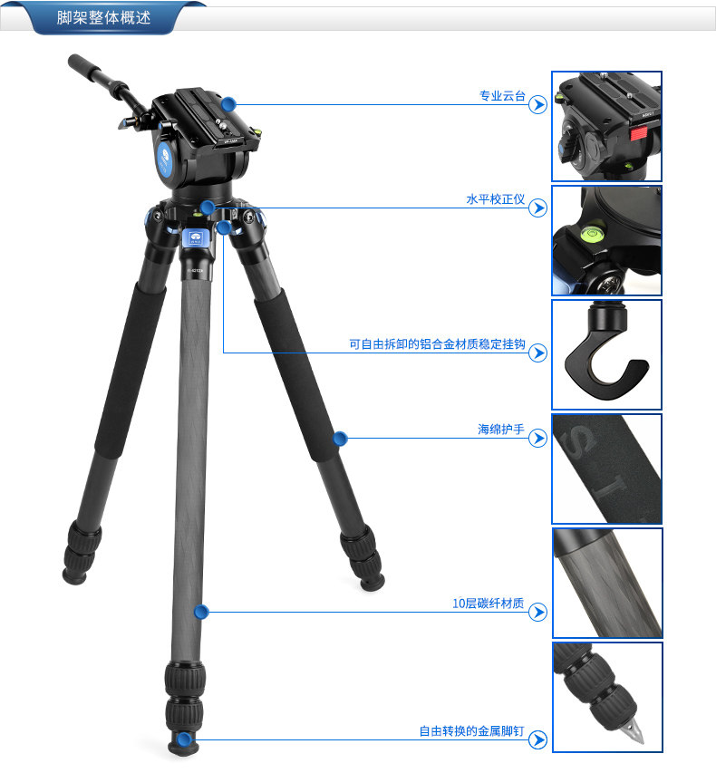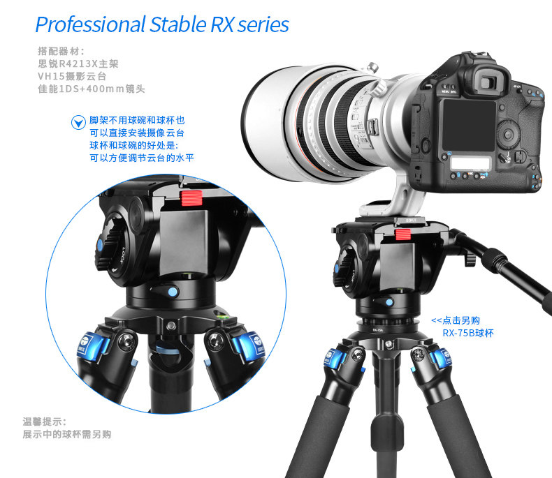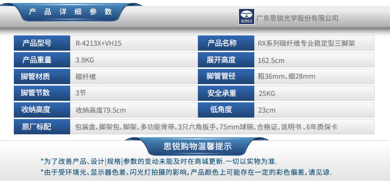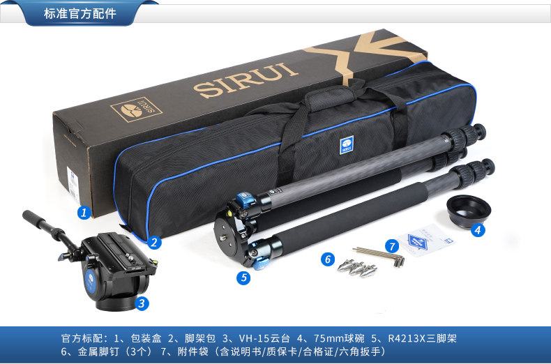 SIRUI 思锐 R4213X+VH15 碳纤维三脚架