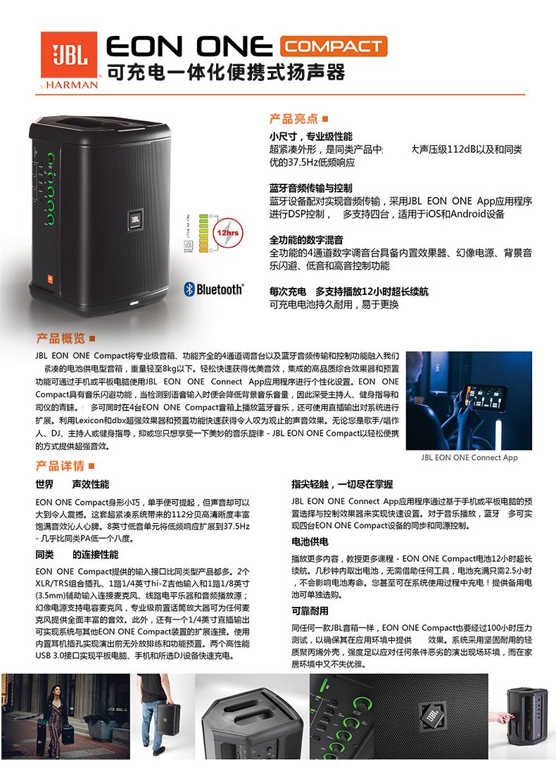 JBL EON ONE Compact可充电一体化便携式扬声器