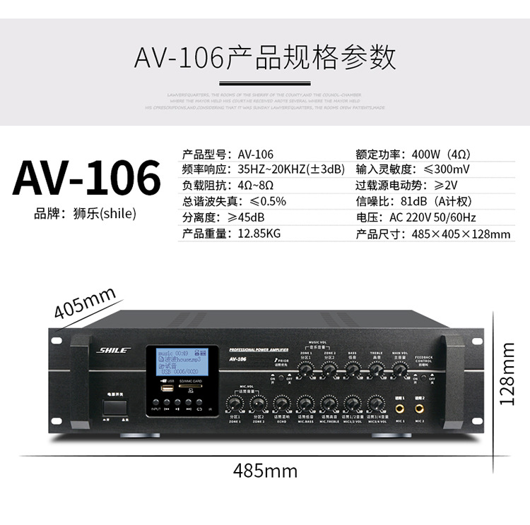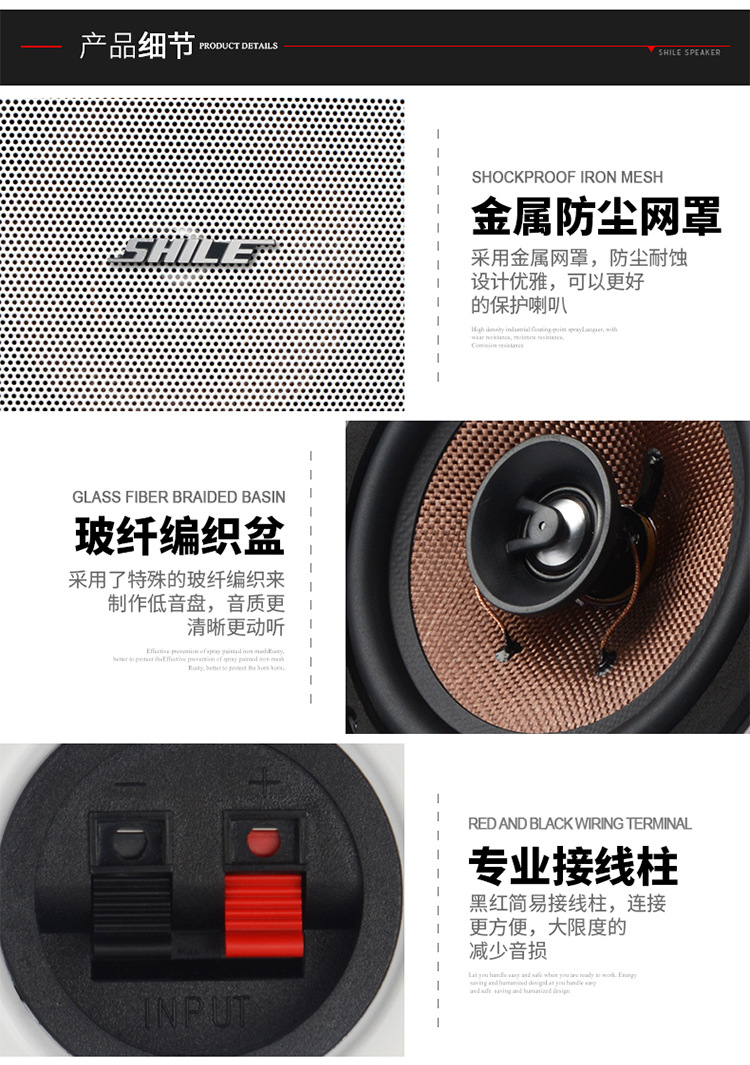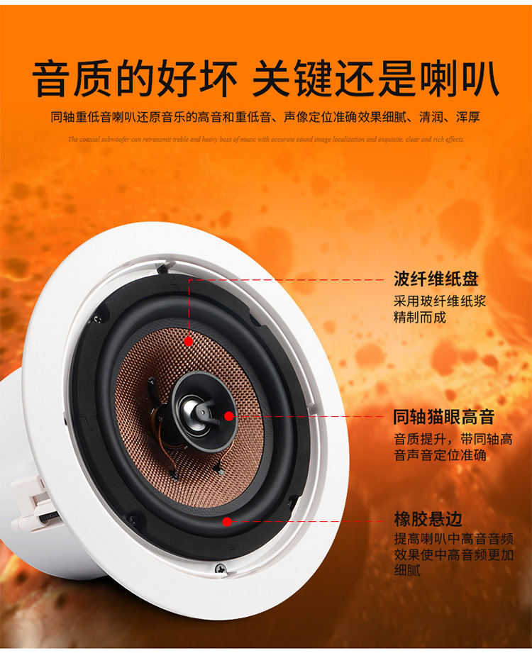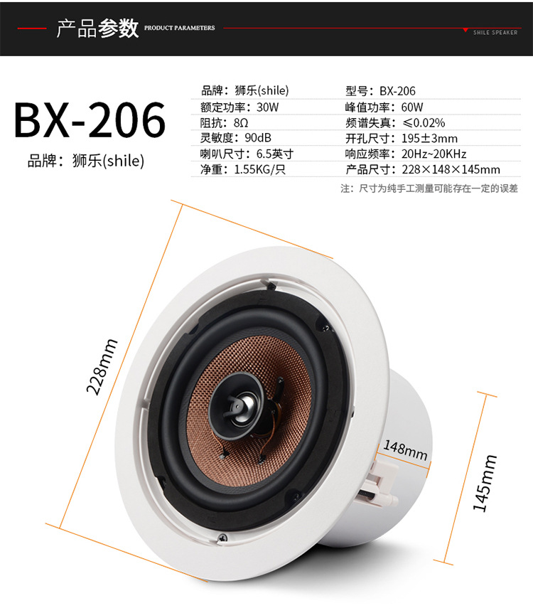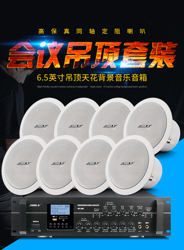 SHILE狮乐AV106+BX206吸顶扬声器一拖八6.5英寸定阻喇叭