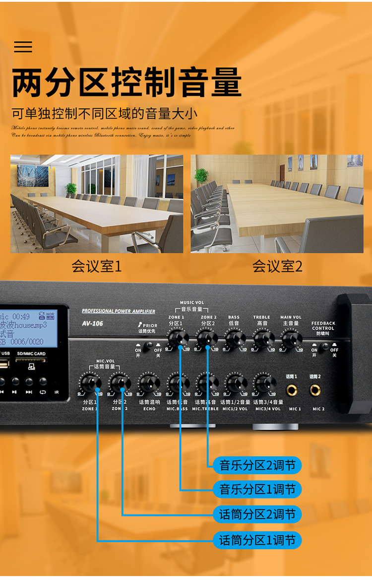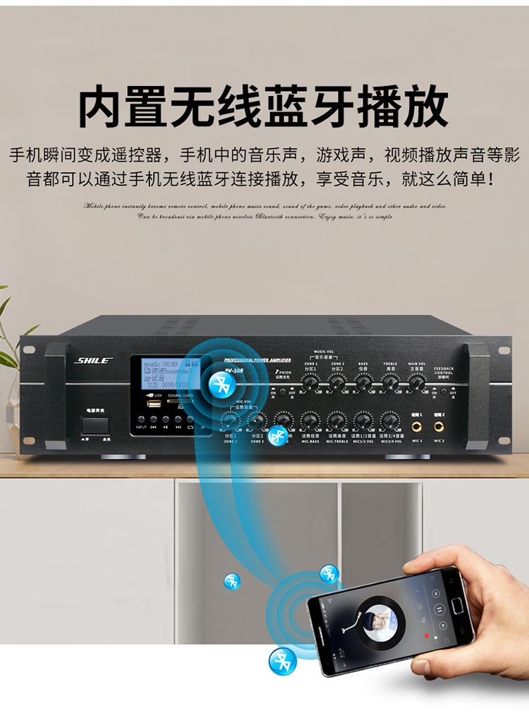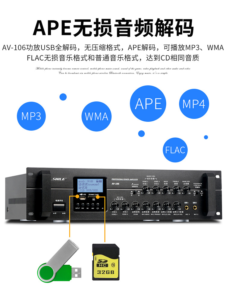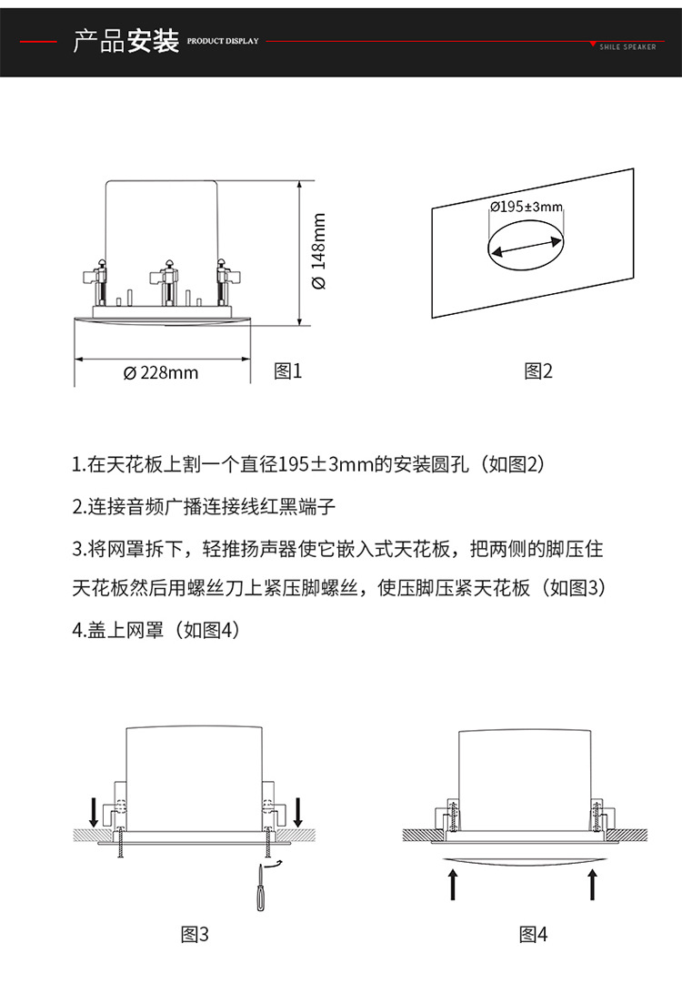SHILE狮乐AV106+BX206吸顶扬声器一拖八6.5英寸定阻喇叭