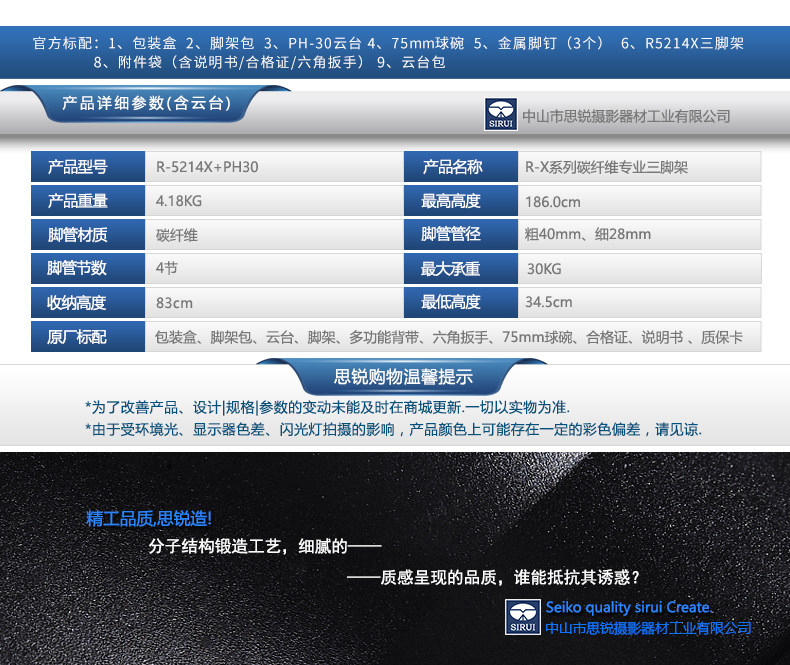 SIRUI思锐三脚架R5214X+PH30套装