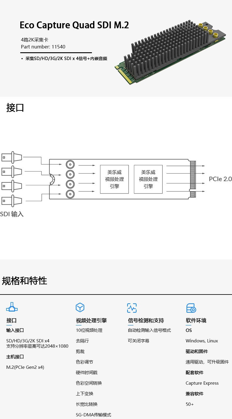 美乐威高清直播视频采集卡 Eco Capture Quad SDI M.2 跨境