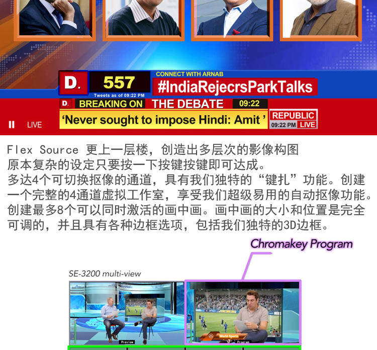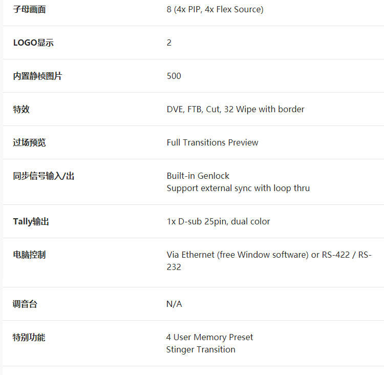 索尼MCX500切换台高清SDI视频9路现场导播台视频抠像录制
