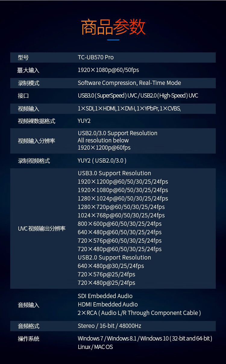 天创恒达 UB570Pro高清采集卡hdmi sdi vga高清视频直播USB