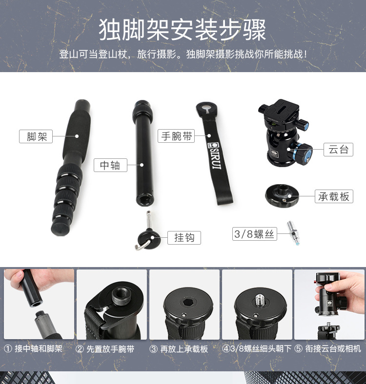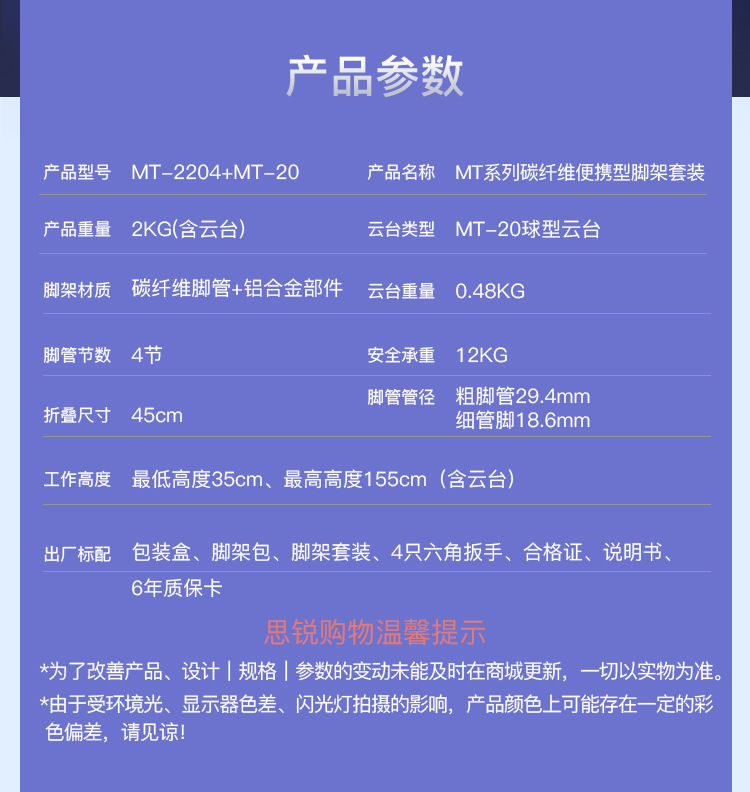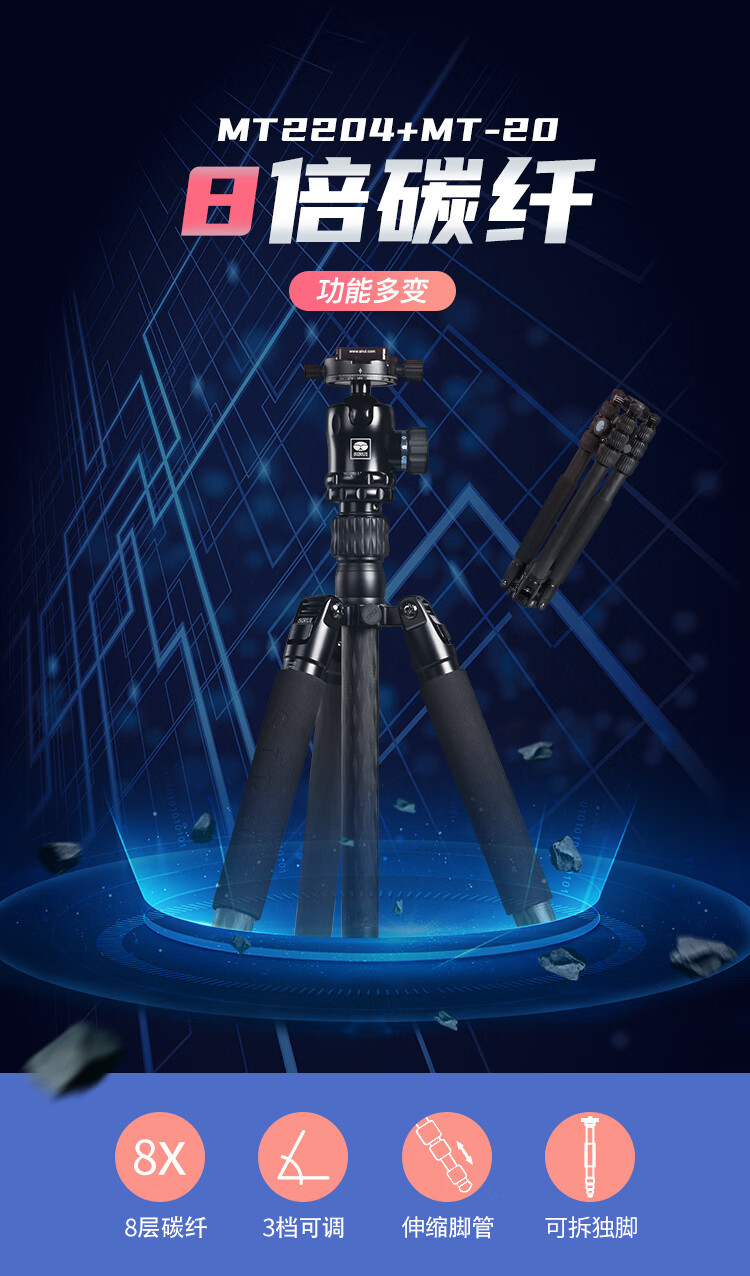 思锐 三脚架 MT2204+MT20 碳纤维含全景云台单反相机三角架