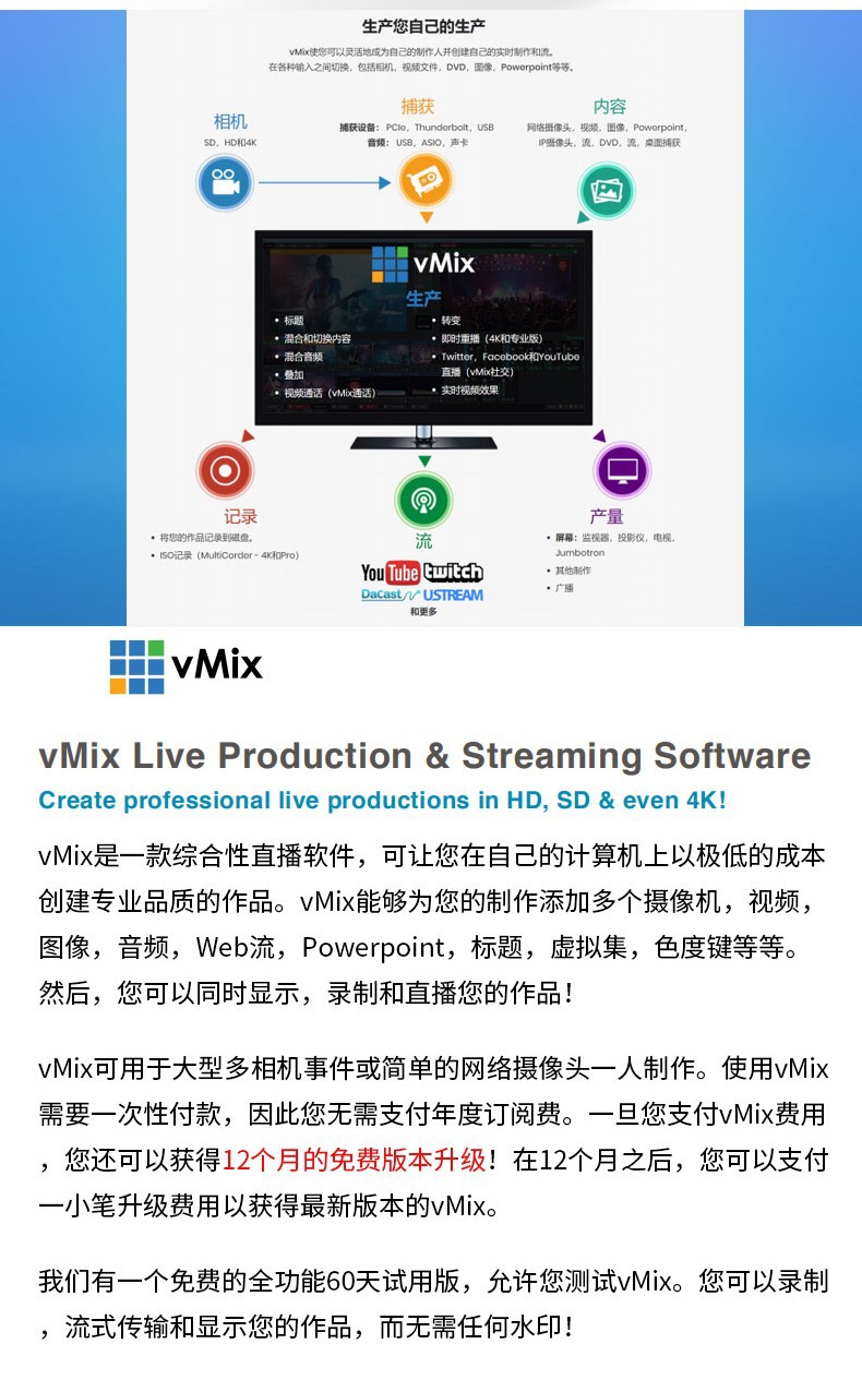 AA演播室vMix软件虚拟演播室校园录制推流字幕制作 即时回放软件